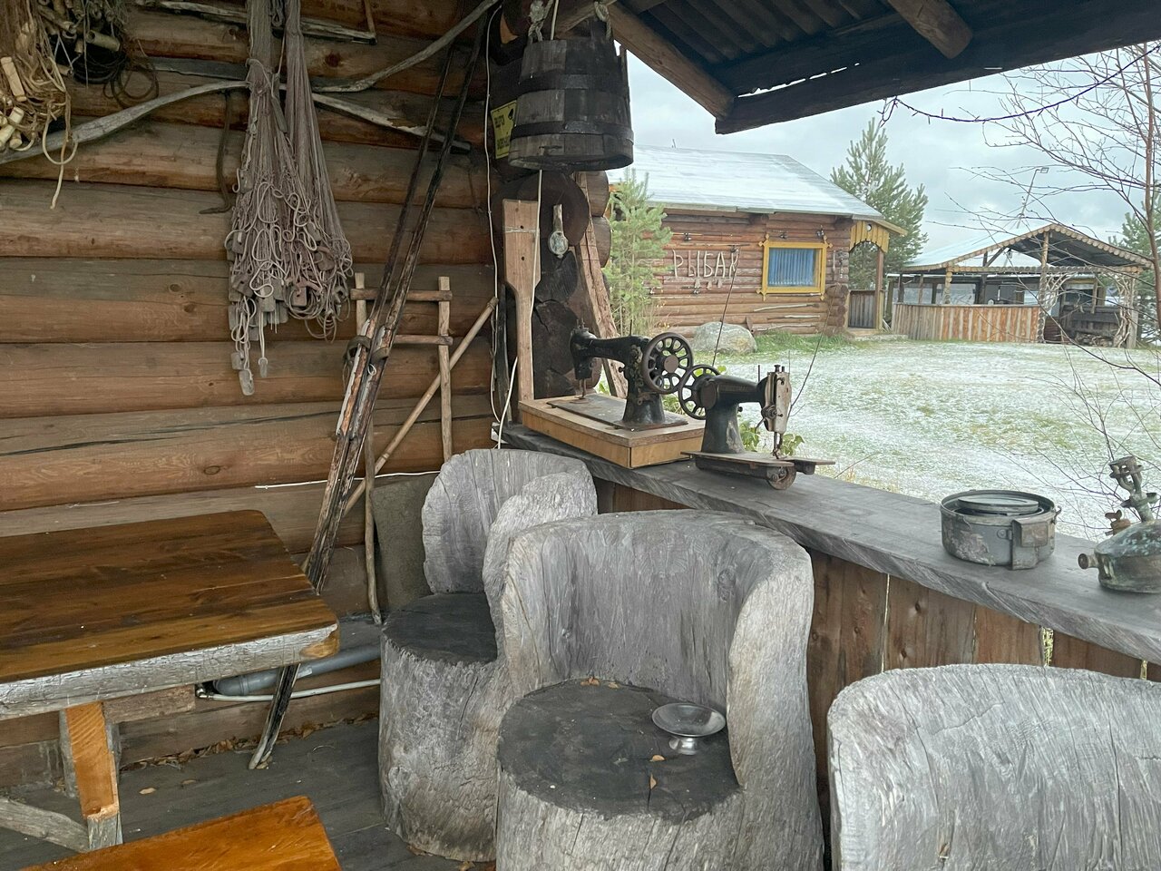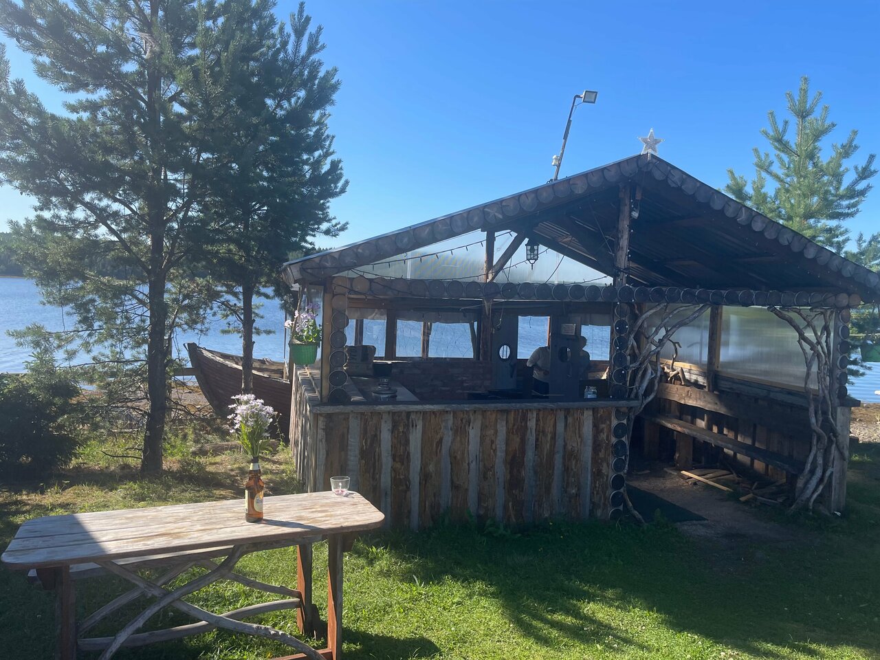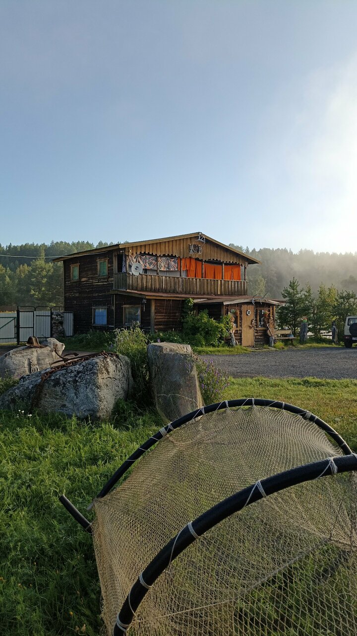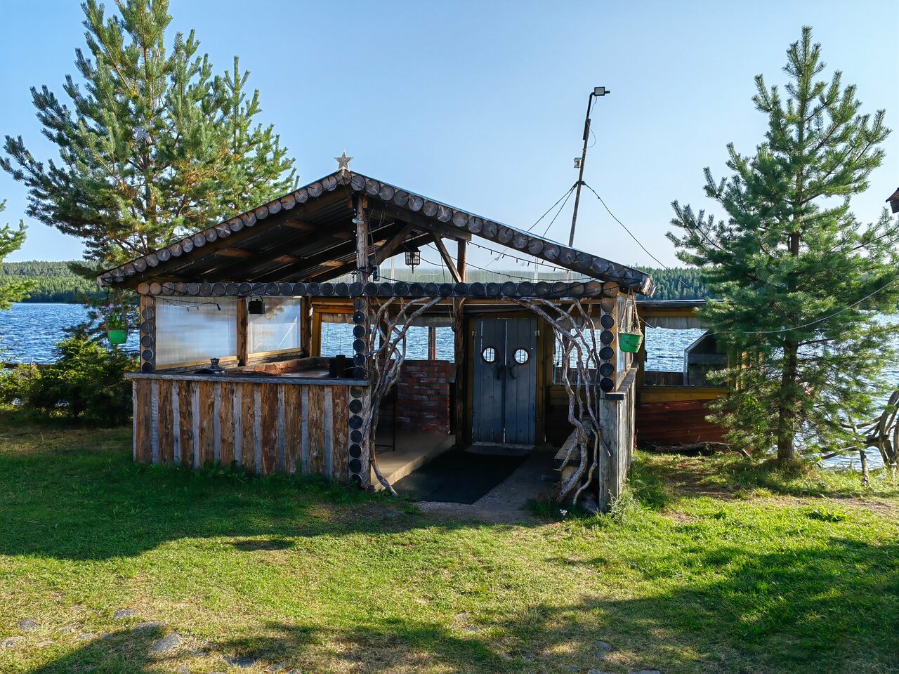 Очень душевное место! Даже захотела загородный дом в такое брутально-коряжно-половичковом исполнении! Вот прям зашло. Ощущение, что никого нет, только мы на этом мысу. Тихо, есть все необходимое (электроплитка и посуда на уличной кухне, там же мангал и место, где после ь за столом компанией — в корабле, закрытом от непогоды и ветров). И ЕДА! Готовят вкусно по предварительному заказу, приносят в контейнерах, разогреваем в микроволновке в доме тогда, когда нам жиру добно. И тазик супа, и ведро гарнира, и котлеты, и салат, и закуску какую-нибудь, и даже компот! Двух порций хватало на обед и ужин двум взрослым и пятилетке с лихвой. И очень вкусно, спасибо хозяйке! Правда, очень красиво, удобно, уединенно и спокойно!