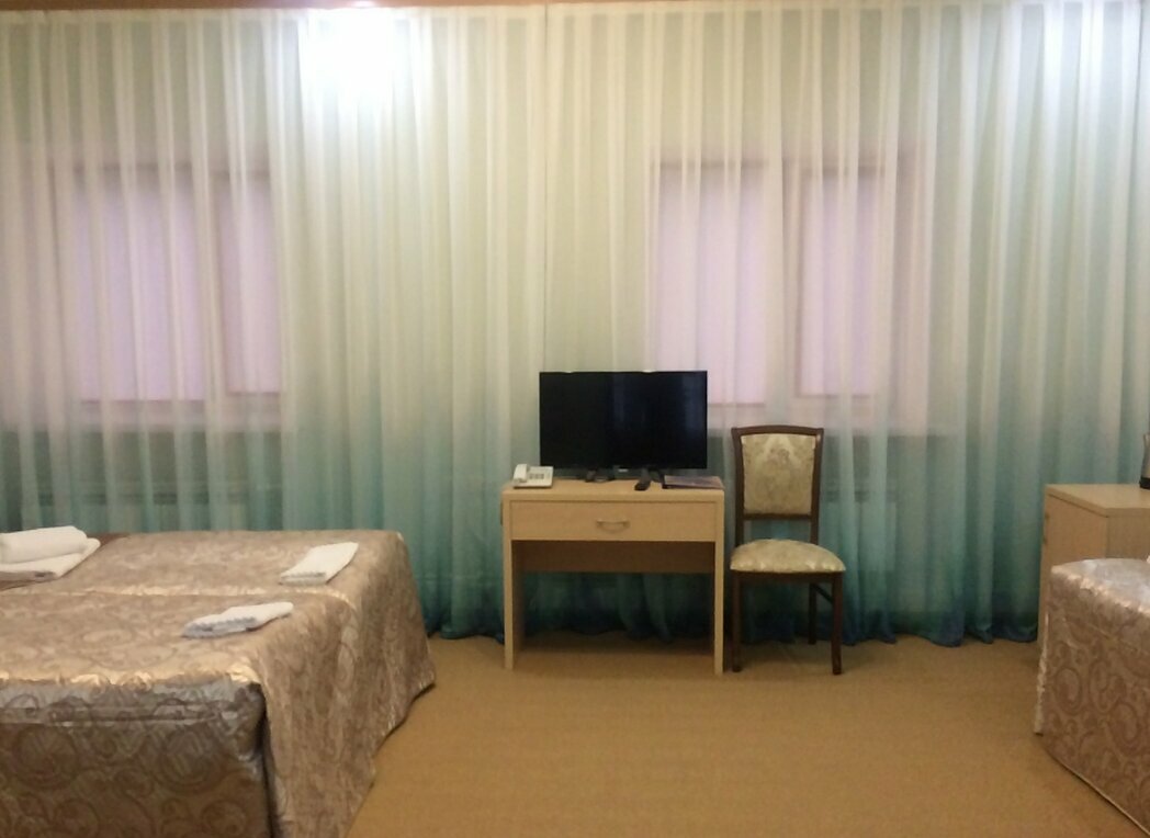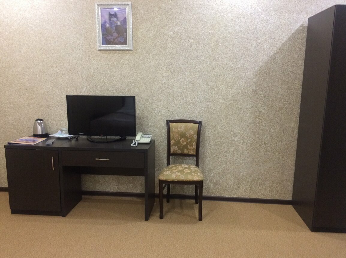 Парковка перед гостиницей большая. Номера нормальные. Рядом есть монетка, магнит, пиццерия, аптека, шашлычная, узбекская кухня. И это от гостиницы в 15м. В номере холодильник, телевизор. Одноразовый шампунь, мыло, фен. Но есть и недостатки они на фото.