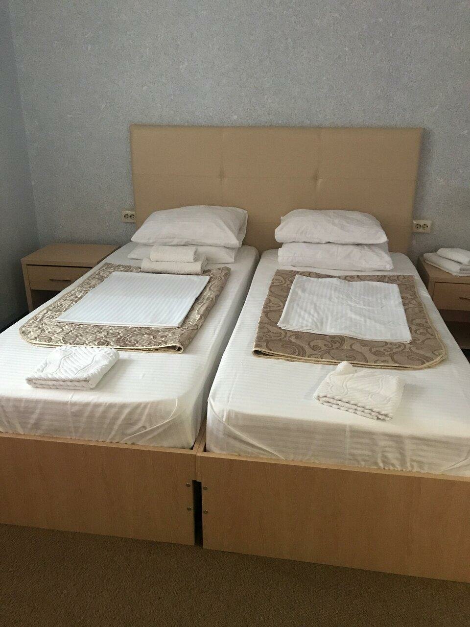 Гостиница приятно удивила. Номер чистый, без посторонних запахов. Свежий ремонтник. Душ и туалет в номере. Есть телевизор, чайник. Мыло, шампунь, тапочки одноразовые. Матрас тоже порадовал. Отлично выспались. На первом этаже есть бургерная. Рядом магазин. Можно с животными. И за это все за двухместный номер заплатили 2000.