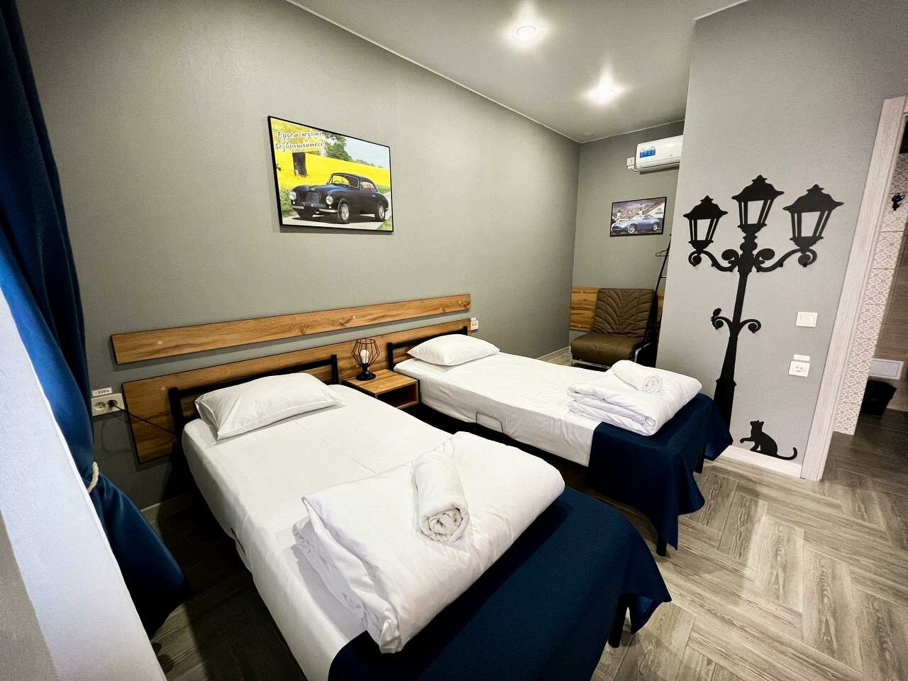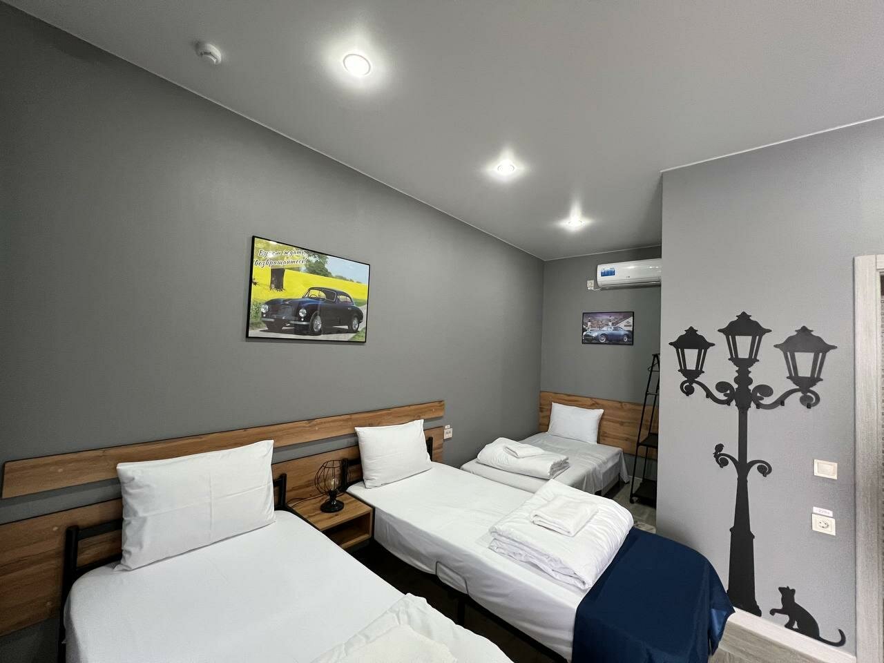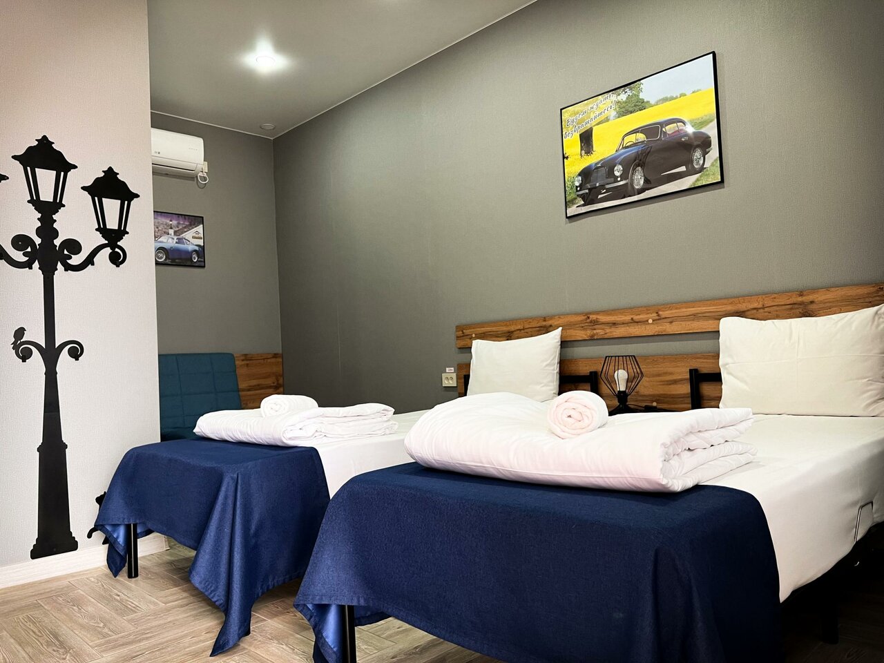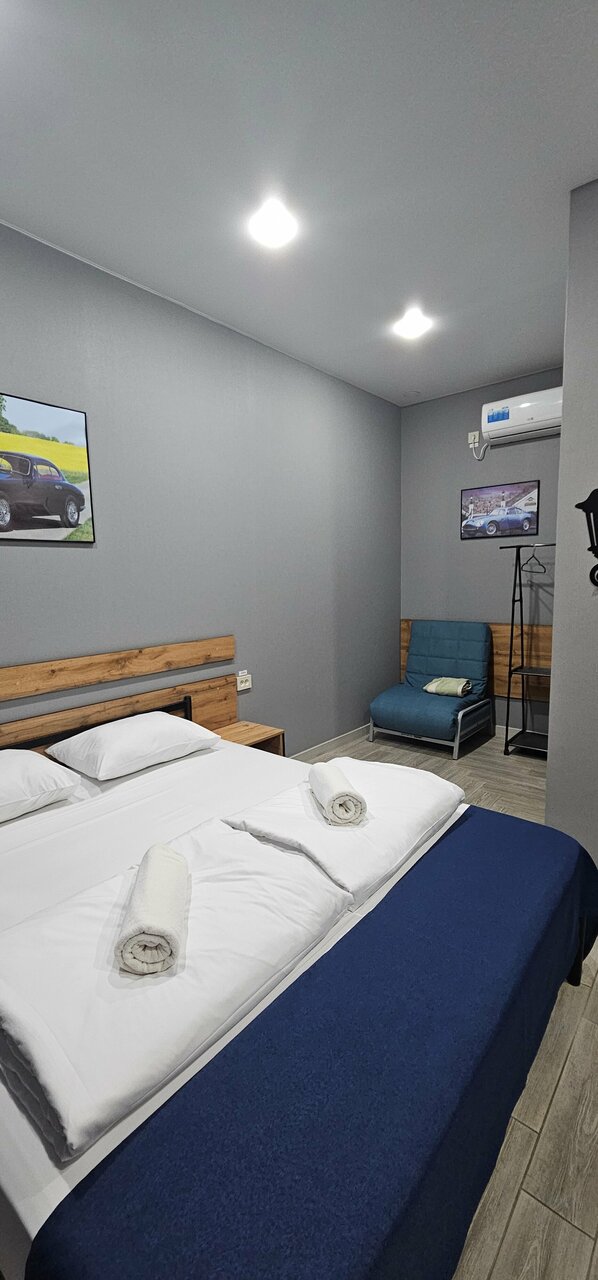 Номера чистые, новые, оборудовано как на картинке, персонал вежлив и приветлив. Расположен в 100 метрах от трассы, её видно и слышно. Ещё небольшой минус это парковка грузовиков с обратной стороны от мотеля. Вы её видите, когда заезжать на территорию, а когда живёшь, то она с задней стены и никого не видно, чуть чуть слышно. Никто не мешает. Магазины, продукты а посёлке в паре километров от мотеля, если очень надо, то можно доехать и купить необходимое. Для остановки на ночь в пути к морю или обратно самое то! Своя машина стоит прям рядом (напротив) твоей двери в комнату. Не тесно, всё помещаются.