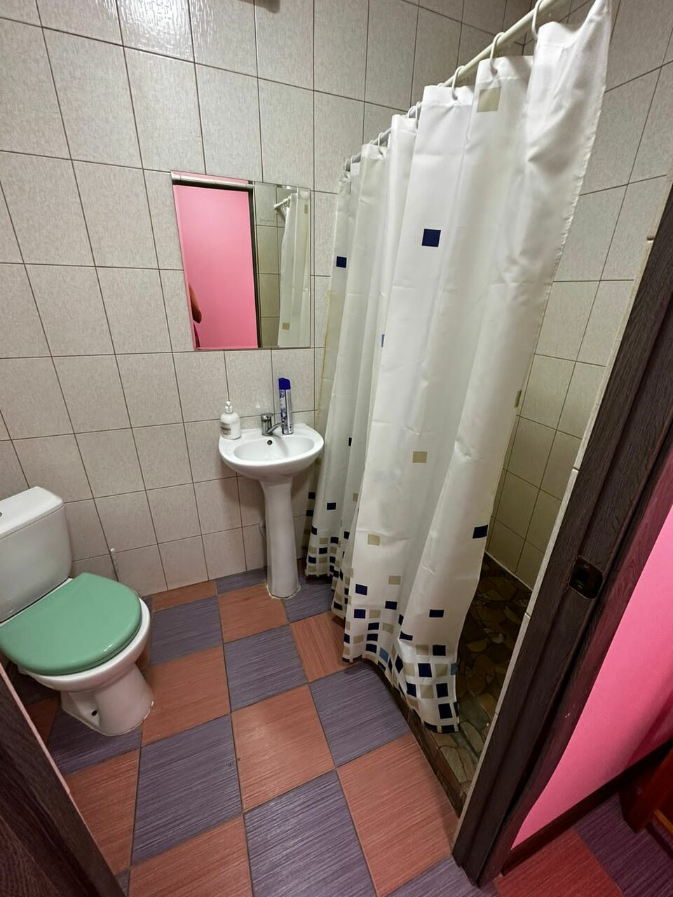 Очень хорошая гостиница, душ, есть, туалет, кондиционер, телевизор, три кровати мы в 6 номере были. Отлично нам всё понравилось, женщина Мариночка просто душка))) привет вам из Самары))) вообще люди в той стороне всё приветливы, не то что у нас все нервные) кафе первое к номерам готовят просто отпад, как будто дома поели, спасибо огромное. Рекомендую всём сюда заворачивать с дороги))