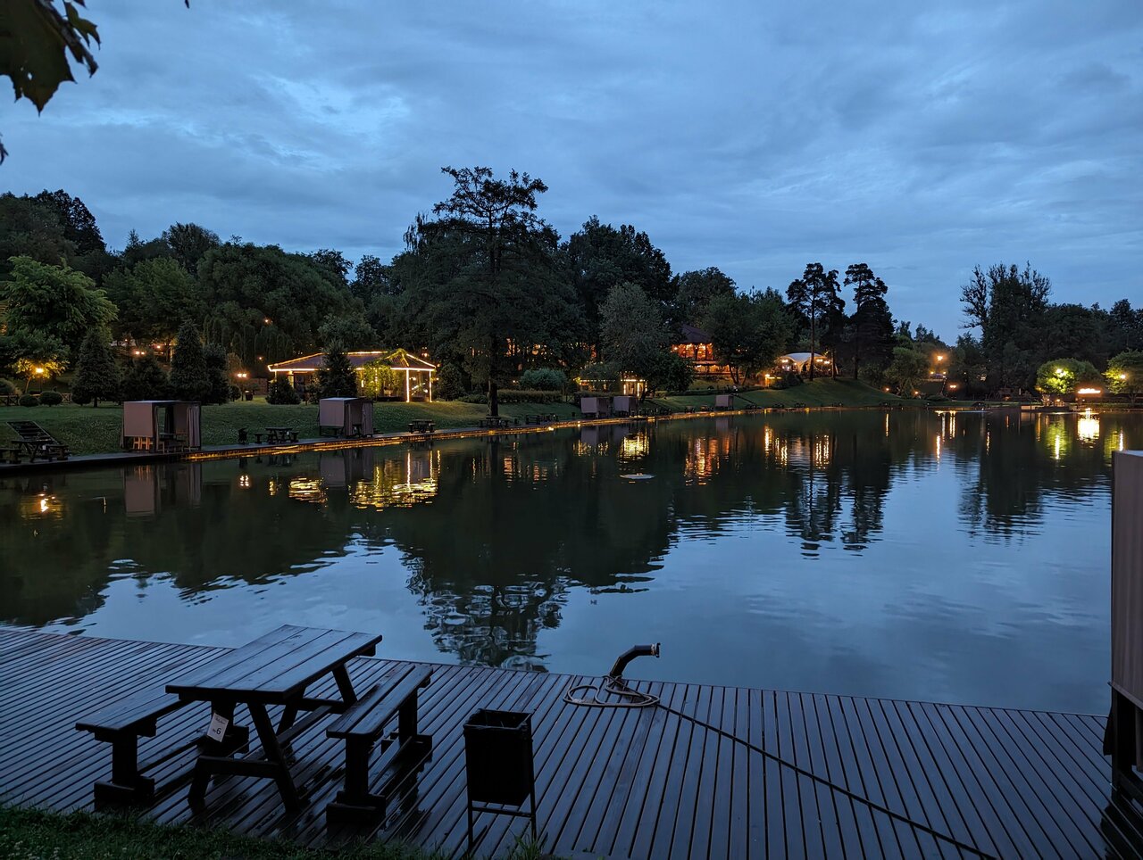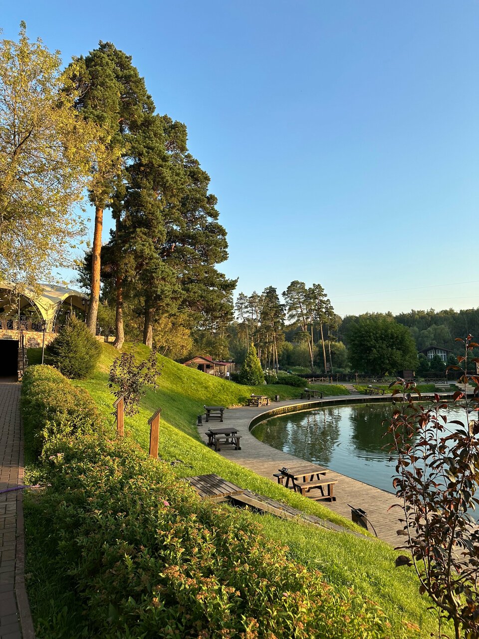 - Возможность аренды домиков для ночлега.; Большая парковка.; Хороший уровень сервиса и организации.; Наличие рыбалки.; Вежливый и приятный персонал.