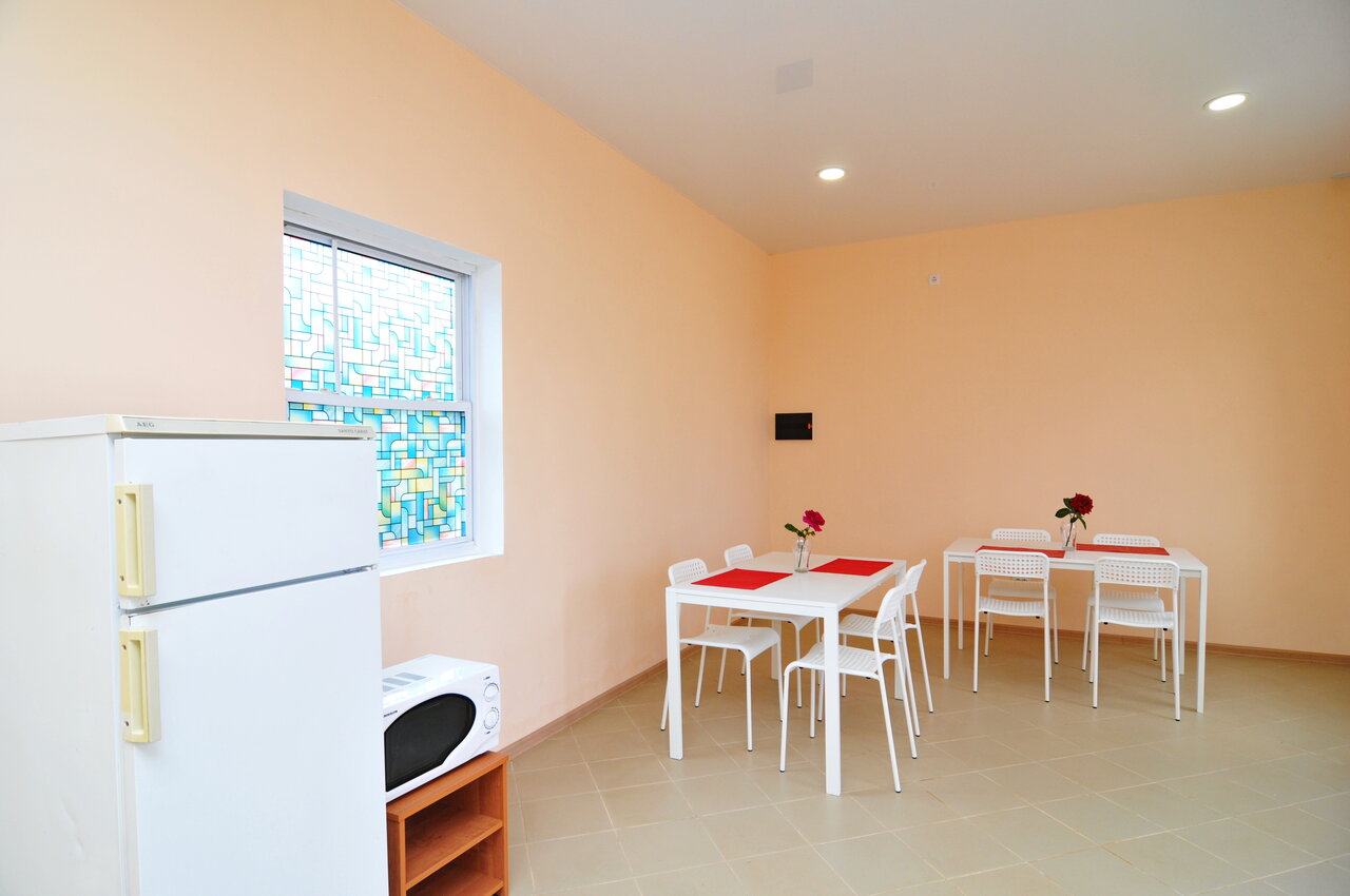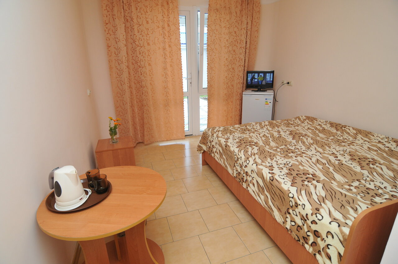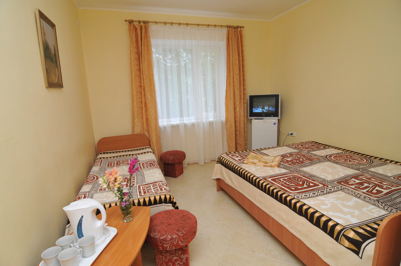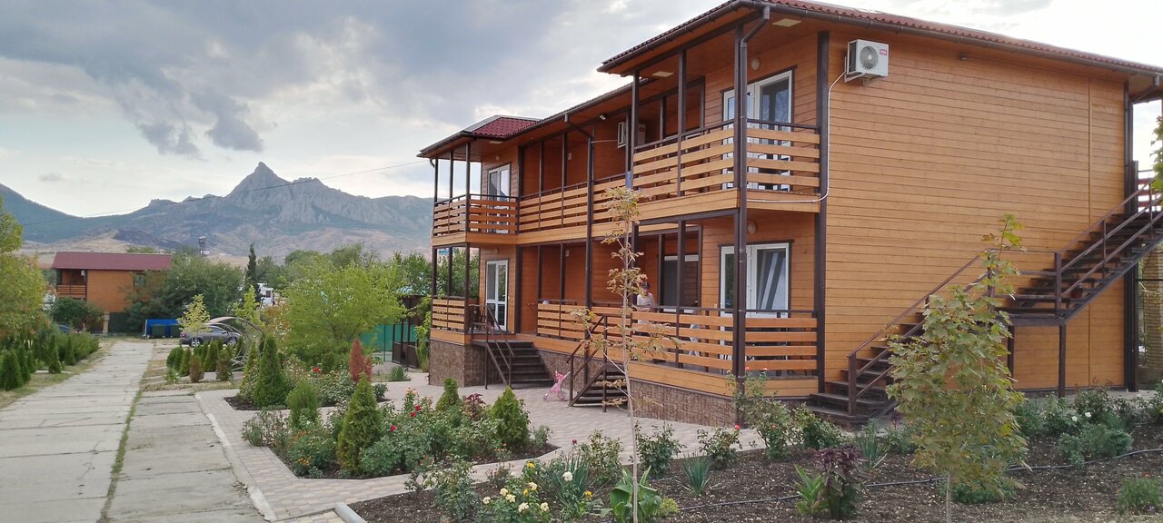 Отличный дом отдыха, отдельные уютные номера, море в 3 минутах ходьбы, дельфинарий рядом, горы. В номерах есть холодильник, чайники. Постели меняют раз в неделю, общая кухня.