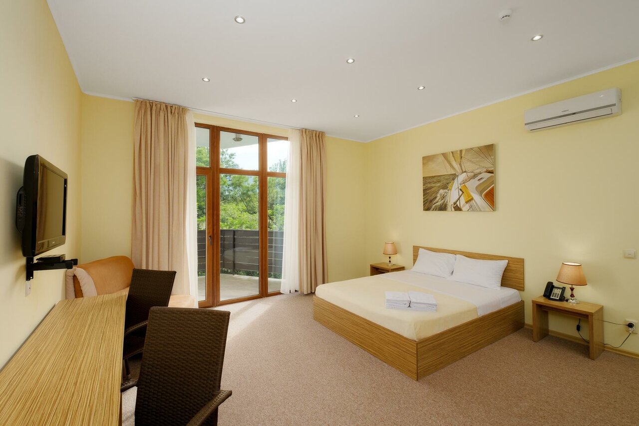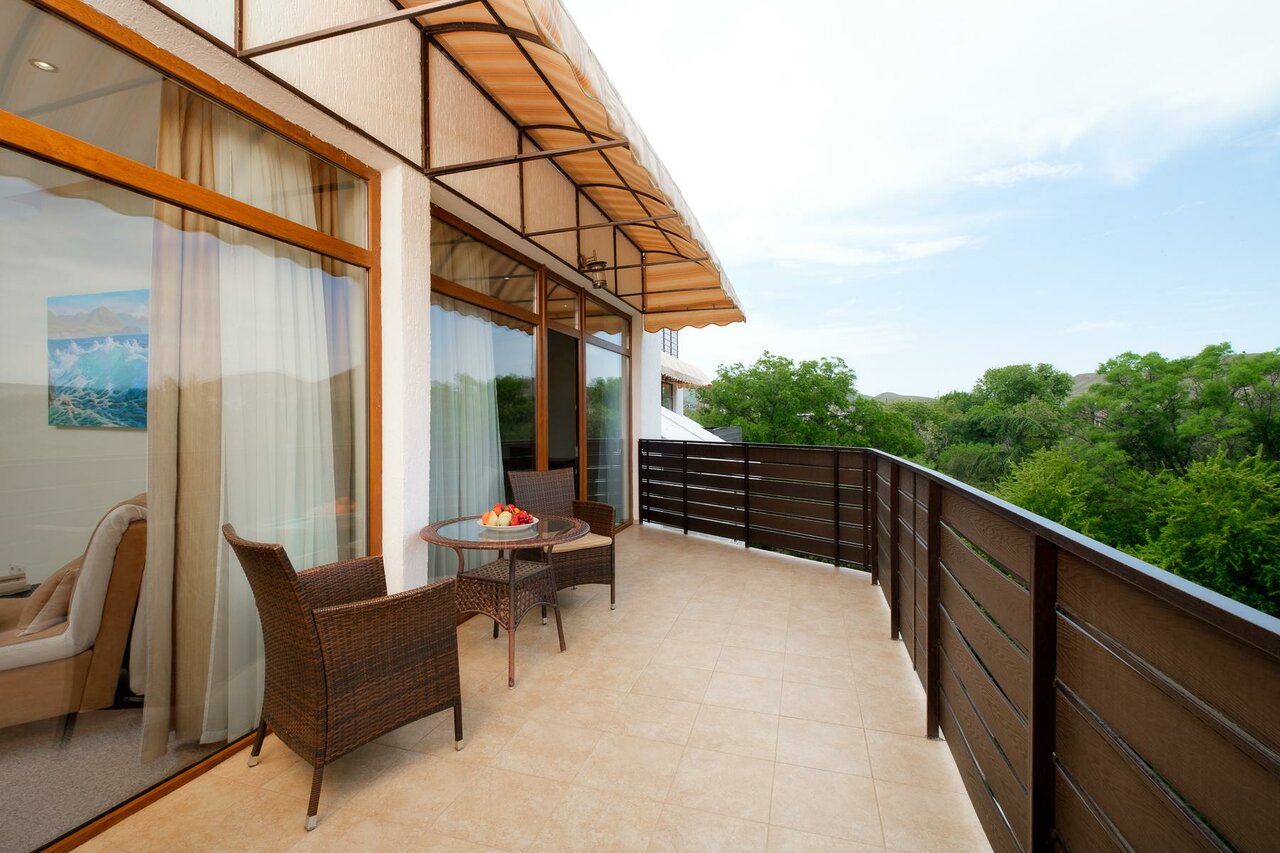 Лучшее место в Коктебеле! Огромная территория, отличный ресторан, спокойное место для великолепного отдыха. Отель находится в парке, практически на берегу моря. Большой номер с просторным балконом и кухней. Нет проблем с водой в номере, напор сильный. В номерах теплый пол и кондиционеры Daikin. Персонал очень отзывчивый и внимательный. Есть своя удобная парковка прямо около корпуса. Рекомендую всем!