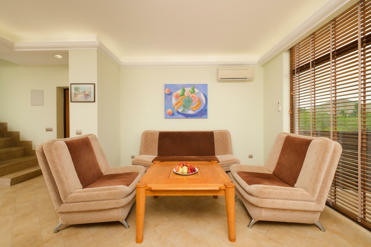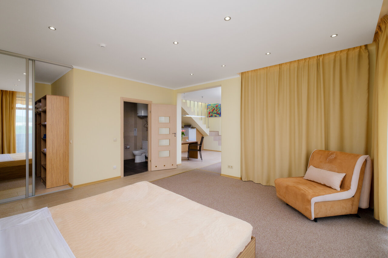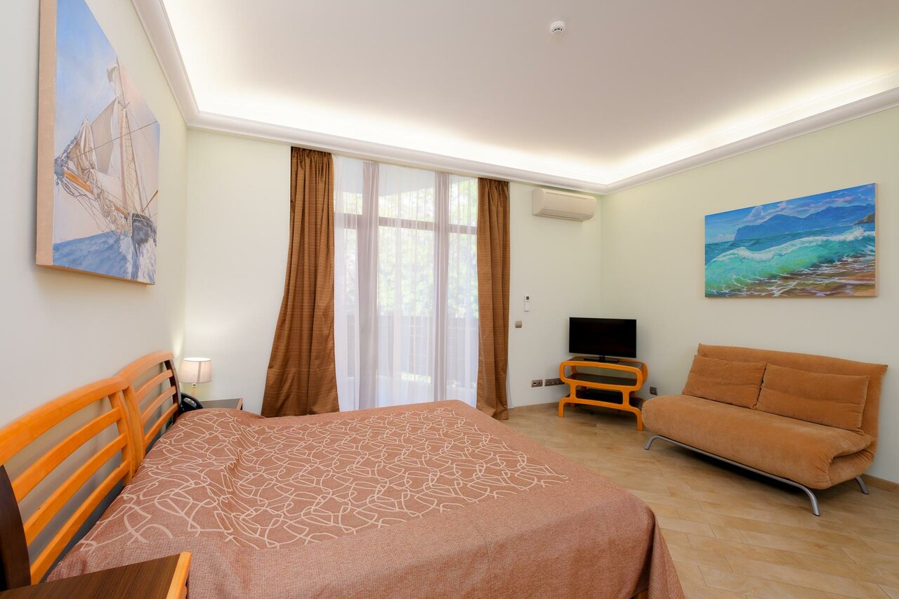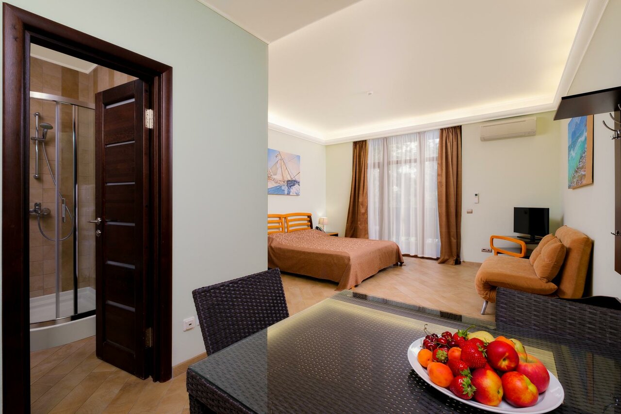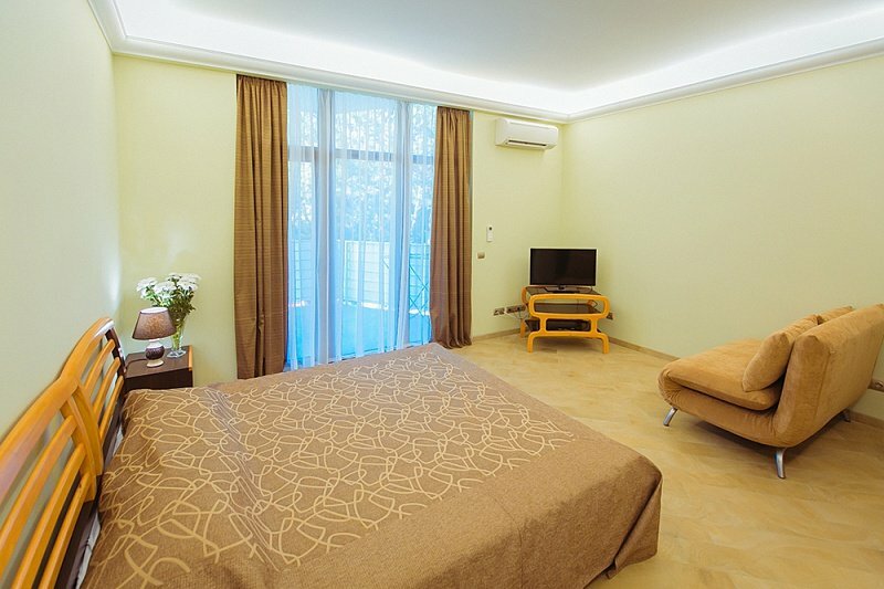 Уютный, чистый, просторный номер. Недалеко от моря. Есть своя территория, закрытая парковка. Отзывчивый персонал.