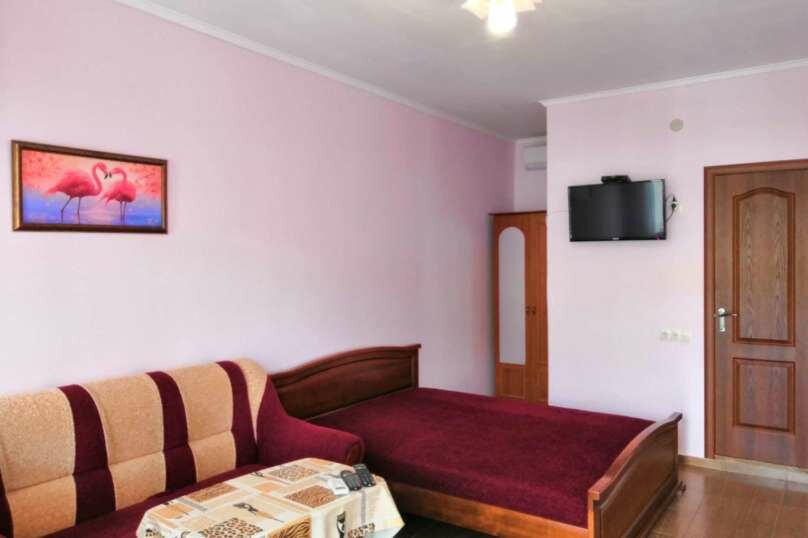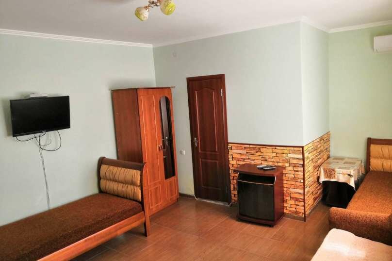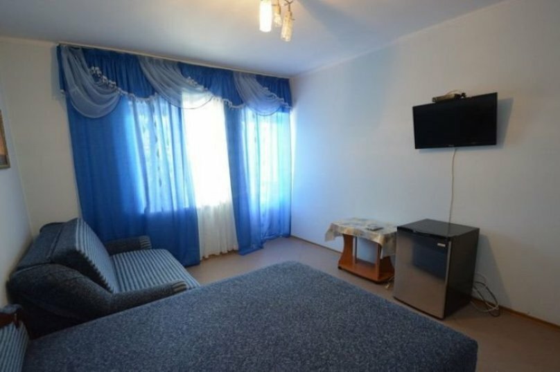Просторный двухкомнатный номер оборудованный всеми необходимыми удобствами. Прекрасно подходит для проживания семей от 4 до 6 человек. В номере есть кондиционер, тв, холодильник, душ, туалет. Небольшая гардеробная позволит не разложить вещи