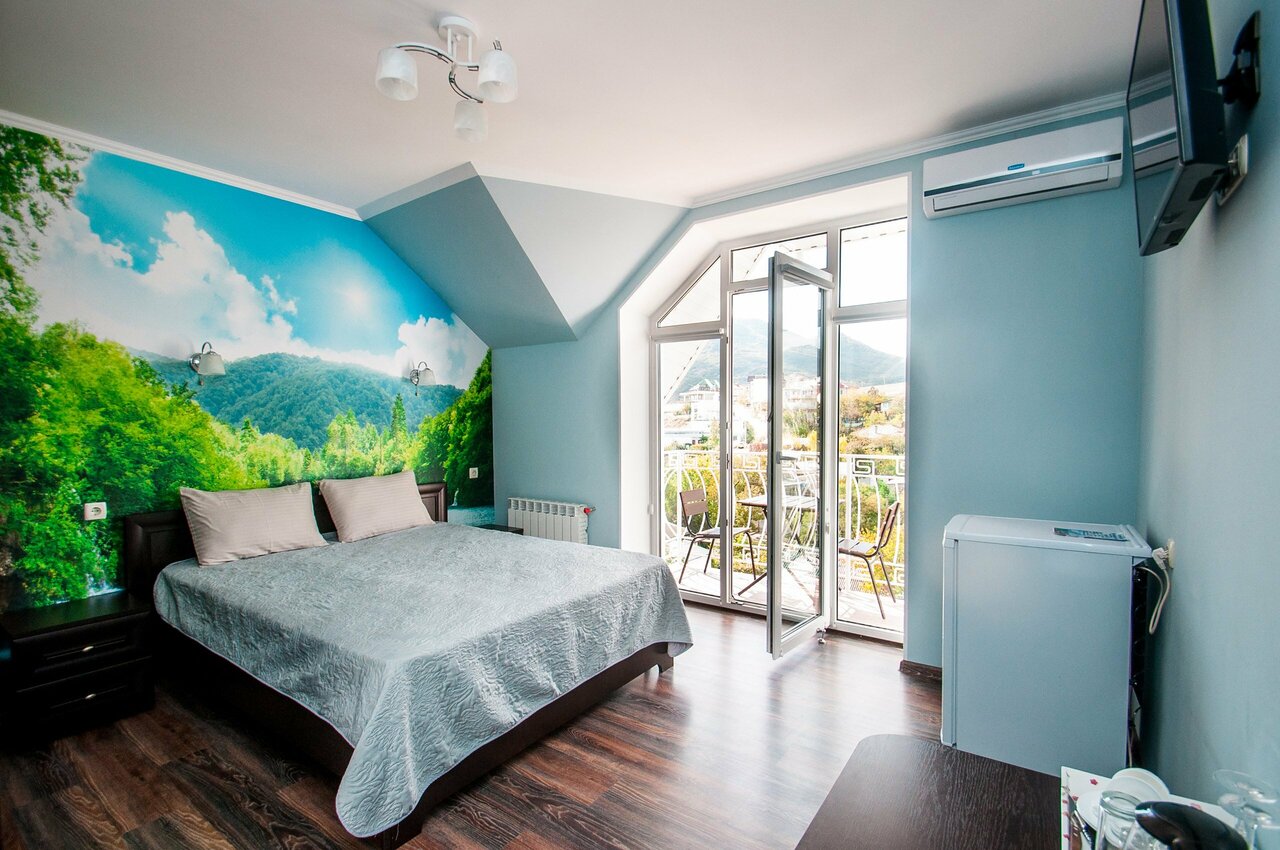 - СТАНДАРТНЫЙ ДВУХМЕСТНЫЙ НОМЕР С БАЛКОНОМ 1 КРОВАТЬЮ И ВИДОМ НА ГОРЫ И МОРЕ 3150₽