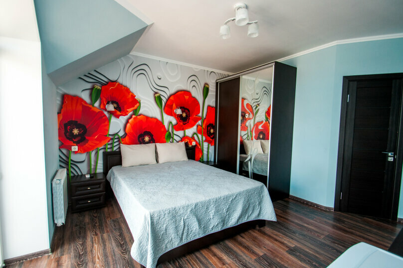 Отель работает круглосуточно и предлагает комфортные номера (от 2500 до 4500 ₽ за ночь, от 2000 до 6000 ₽ за час) с кондиционером, звукоизоляцией, Wi-Fi, телевизором, мини-баром и чайной зоной. Для гостей доступны тренажёрный зал, аквапарк, бар, кафе, столовая, общая кухня, терраса и сад с виноградником.