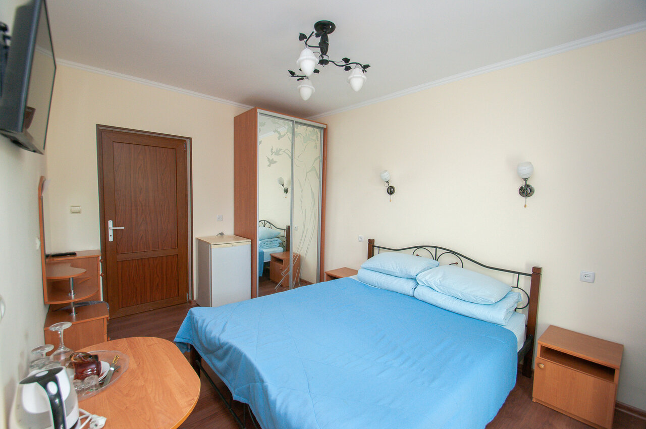 - НЕБОЛЬШОЙ НОМЕР С ДВУСПАЛЬНОЙ КРОВАТЬЮ НА 2 ИЛИ 3 ЭТАЖЕ С БАЛКОНОМ И ВИДОМ НА МОРЕ 2500₽