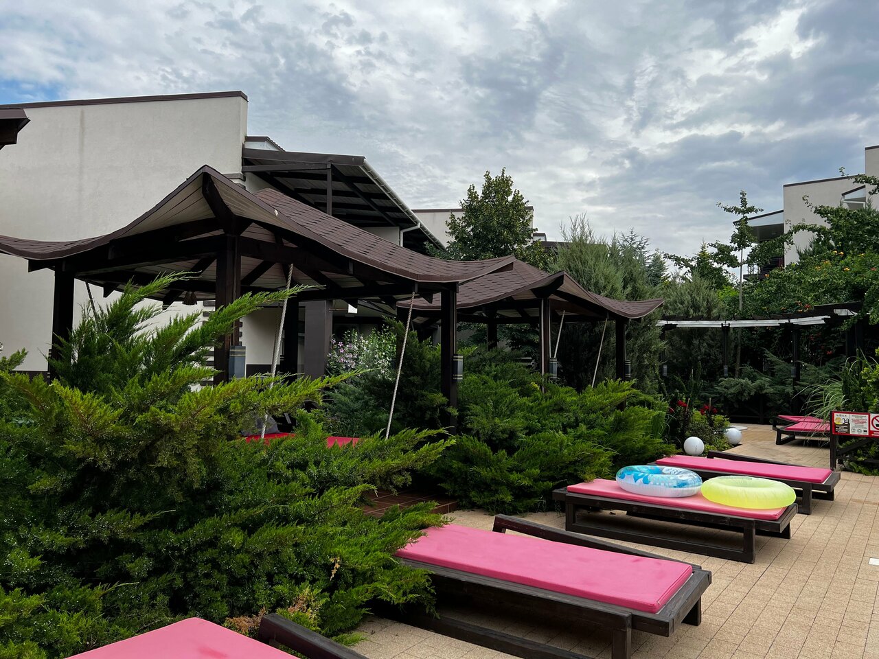 Всё очень понравилось. Номер чистый, просторный. Очень порадовала зона отдыха (большой бассейн с подогревом воды, качели-диваны и качели-кровати). На территории есть ресторан. Море в 5ти минутах ходьбы. Шведский стол тоже очень достойный (большое разнообразие блюд)