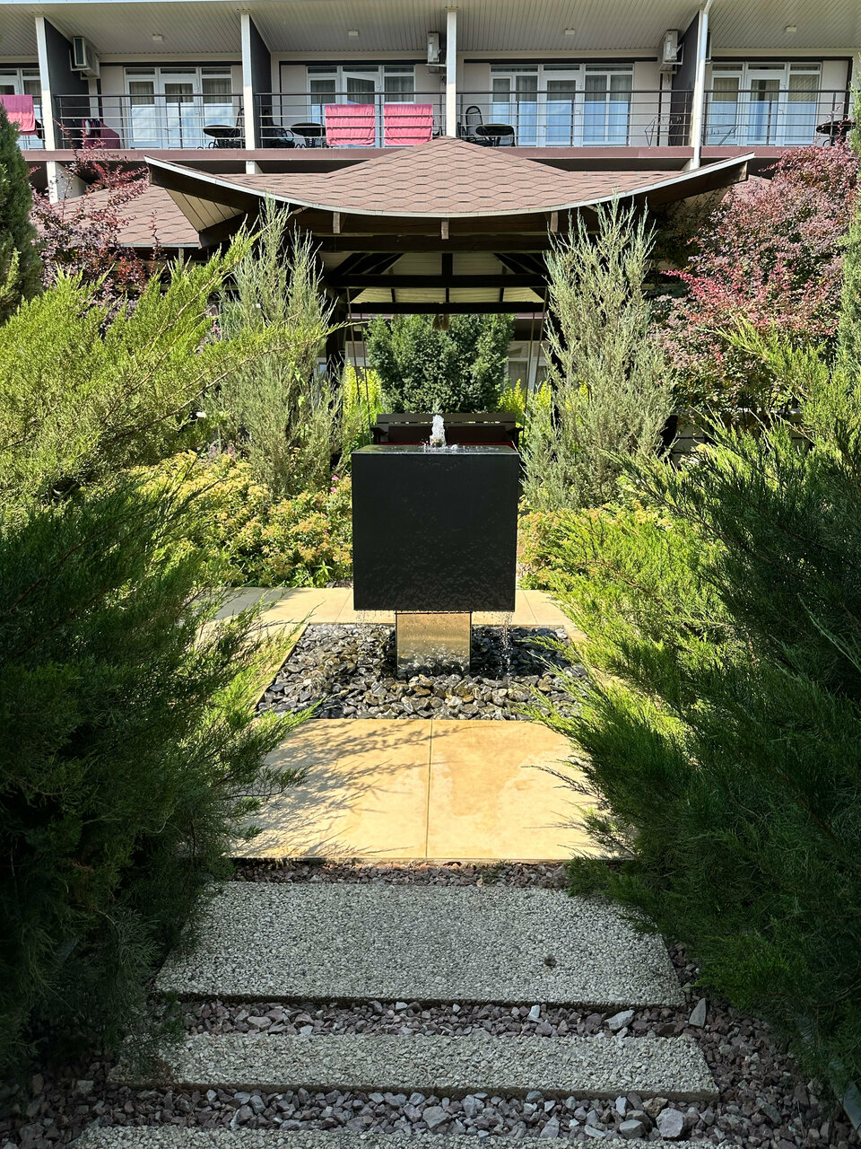 Отдыхала в отеле в сентябре три дня. Купилась на отличные отзывы. Такое впечатление, что отзывы заказные или люди больше нигде не отдыхали. Территория отеля действительно небольшая с хорошим ландшафтный дизайном и большим бассейном. Но бассейн холодный, экономят на обогрева. Поэтому родители с детьми тусят в крошечном пластиковом бассейне в релакс зоне. Поэтому это уже не зона релакс!!! Номера очень грусные, с очень дешёвым ремонтом и мебелью. Жила в коттедже А. Кормят нормально, но выпечка практически вся магазинная!, И само помещение, в котором проходят завтраки и обеды, это обыкновенная мрачная столовая. Могли бы на столы хоть салфетки положить, а то голый тёмный стол. Сутки проживания 13900 рублей на двоих с полупансионом. При этом нет своего пляжа, тренажёрного зала, СПА центра. За эти деньги а Алуште и Ялте можно отдохнуть . Ну и Коктебель — это вообще ужас.