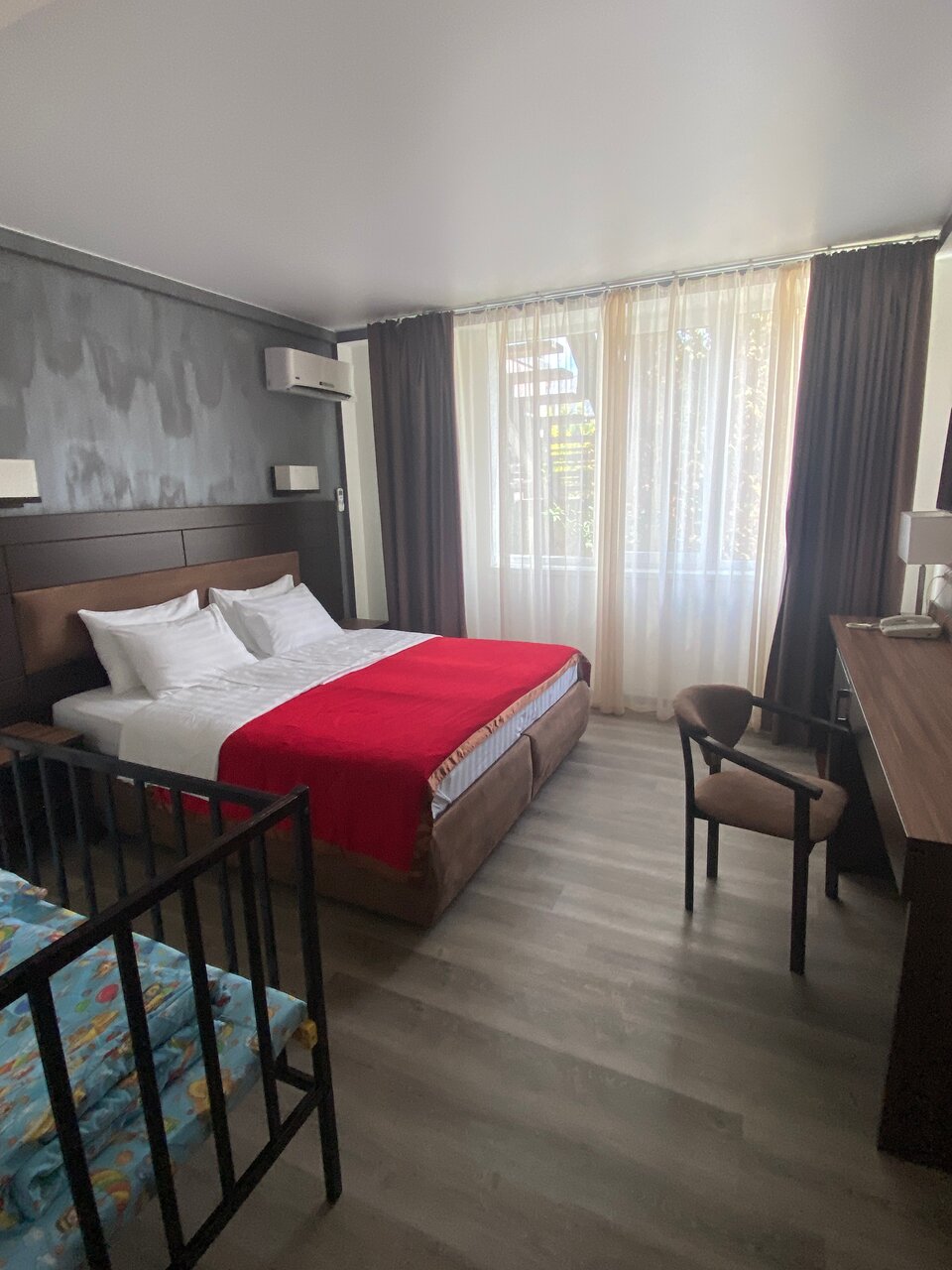 Отличный отель! Отдыхаем уже пятый год. Чудесный персонал. Достаточно вкусная еда. Соответствует своей цене. Уборка в номере каждый день. На территории отличный бассейн. Много развлечений для детей. Хороший ресторан вечером. Развлекательной программы хотелось бы больше, но отель позиционирует себя как Семейный, поэтому все только до 23.00. Бар с вкусными коктейлями и прекрасными барменами работает круглосуточно. Есть своя система скидок. Рекомендую 100%