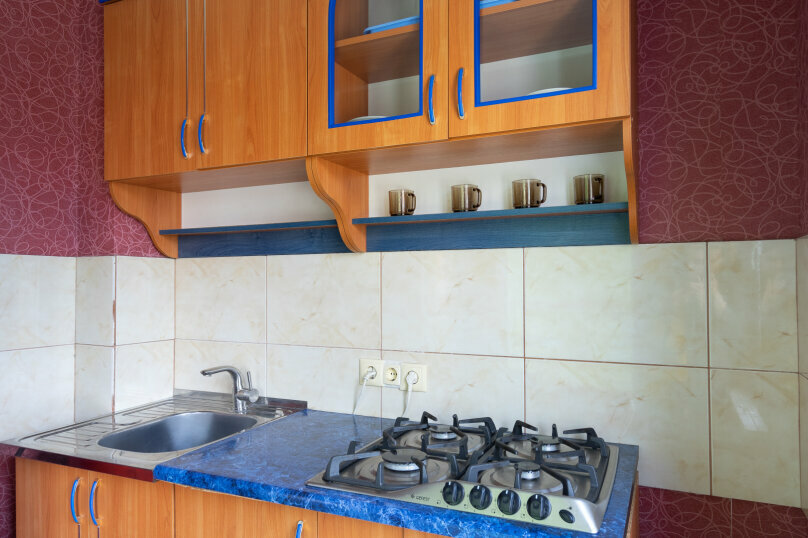 Отличный гостевой дом. Комфортные номера. Уютный дворик. Кухня и во дворе и в номерах. Выдача всего постельного с регулярной заменой. Всё для готовки, весь ассортимент. До моря по прямой десять минут.