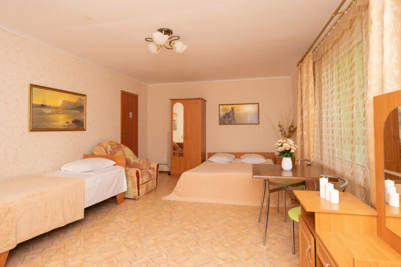 Всем доброго дня суток. Остановились мы в Коктебеле в частном секторе пер. Школьный 8 Номер просторный, чистый, уютный. Есть большая 2х спальная кровать+ односпальная, нас приехоло трое двое взрослых и ребёнок. Есть кондиционер.,холодильник,телевизор,душ совмещен с туалетом. Чисто и уютно как дома. Также есть общая стиральная машина, летняя кухня с большим количеством посуды, веранда, где приятно покушать. Рядом детская площадка. Внутренний дворик чистый и благоустроенный. Есть большая площадка для авто. До моря 5-7 минут хоьбы. Пляж отличный. Базарчики, кафешки, столовые. Цены приемлемые. Рядом аквапарк. Всем советую ДОМ У МОРЯ.