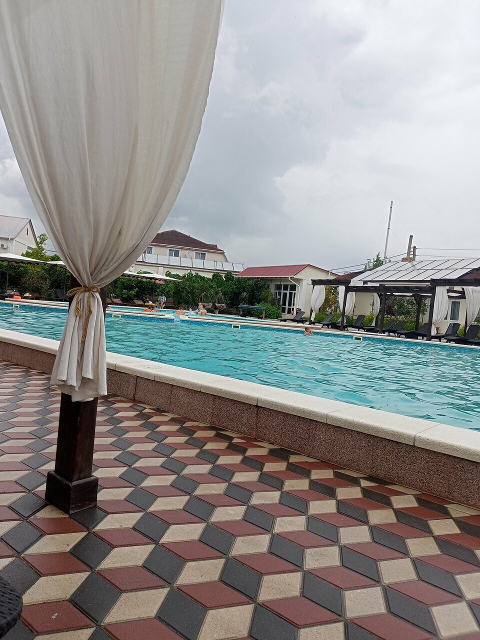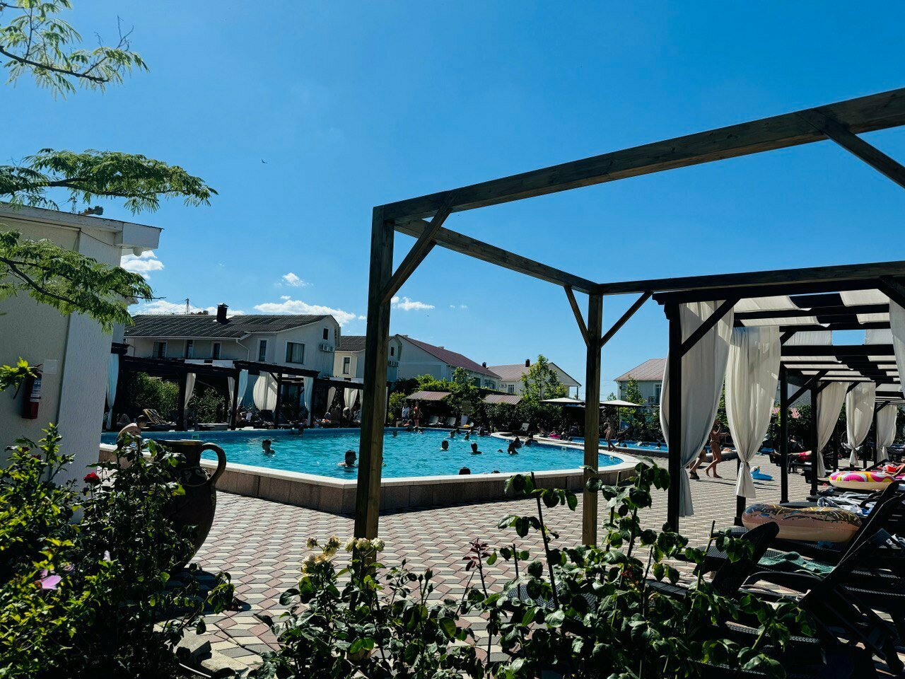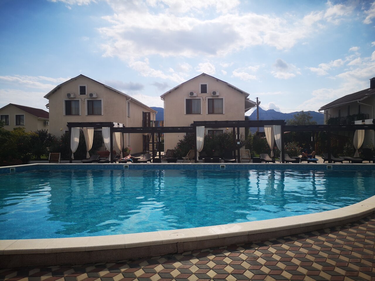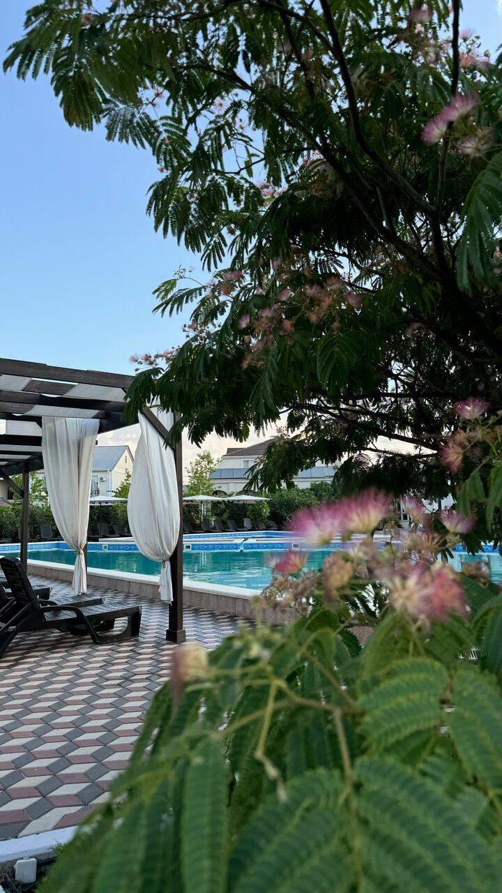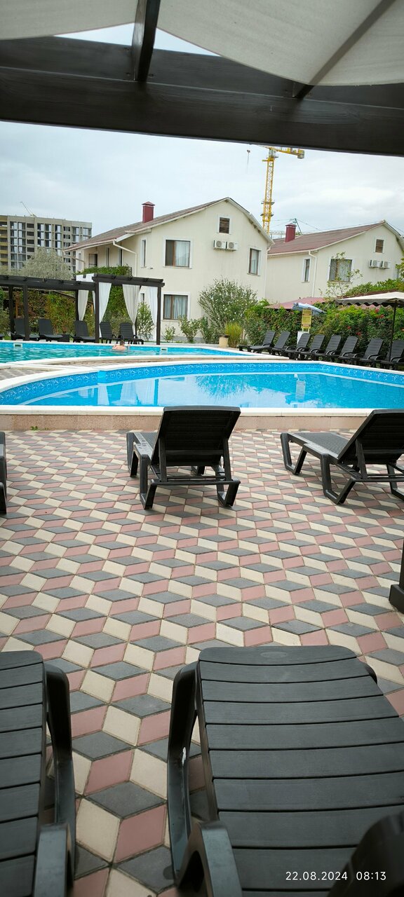 Отдыхали в отеле с детьми. Очень всё понравилось. Красивая территория, детский и взрослый бассейн, вкусно готовят, для детей есть программа с аниматором, беседки, мангал, до моря идти недалеко, часто производится уборка номеров и смена полотенец. Большое спасибо персоналу!