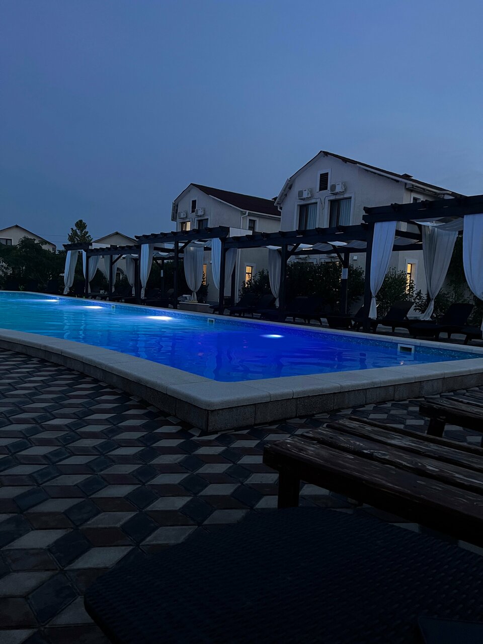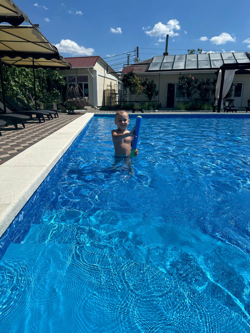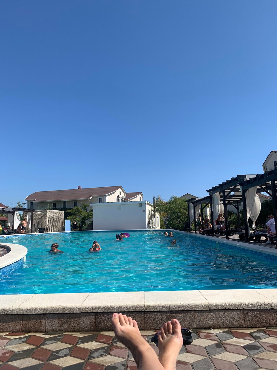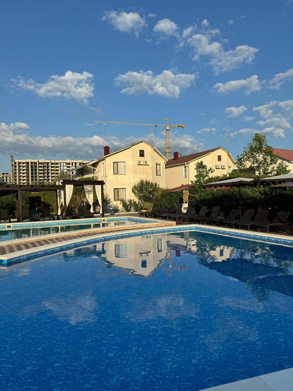 Отдыхали в отеле с детьми. Очень всё понравилось. Красивая территория, детский и взрослый бассейн, вкусно готовят, для детей есть программа с аниматором, беседки, мангал, до моря идти недалеко, часто производится уборка номеров и смена полотенец. Большое спасибо персоналу!