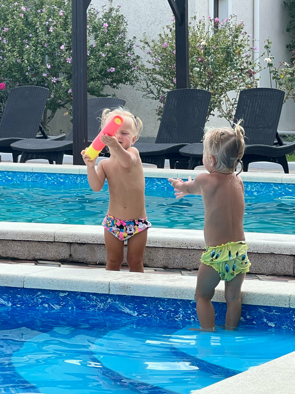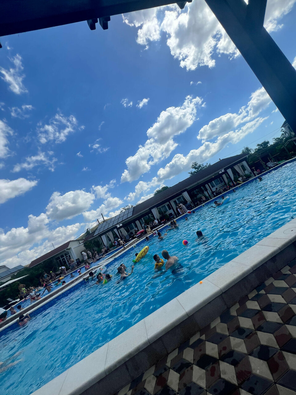 - Дети купаются во взрослом бассейне.