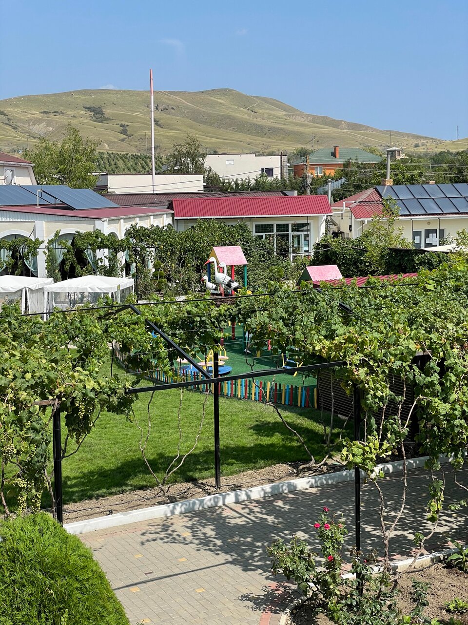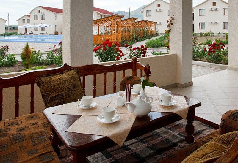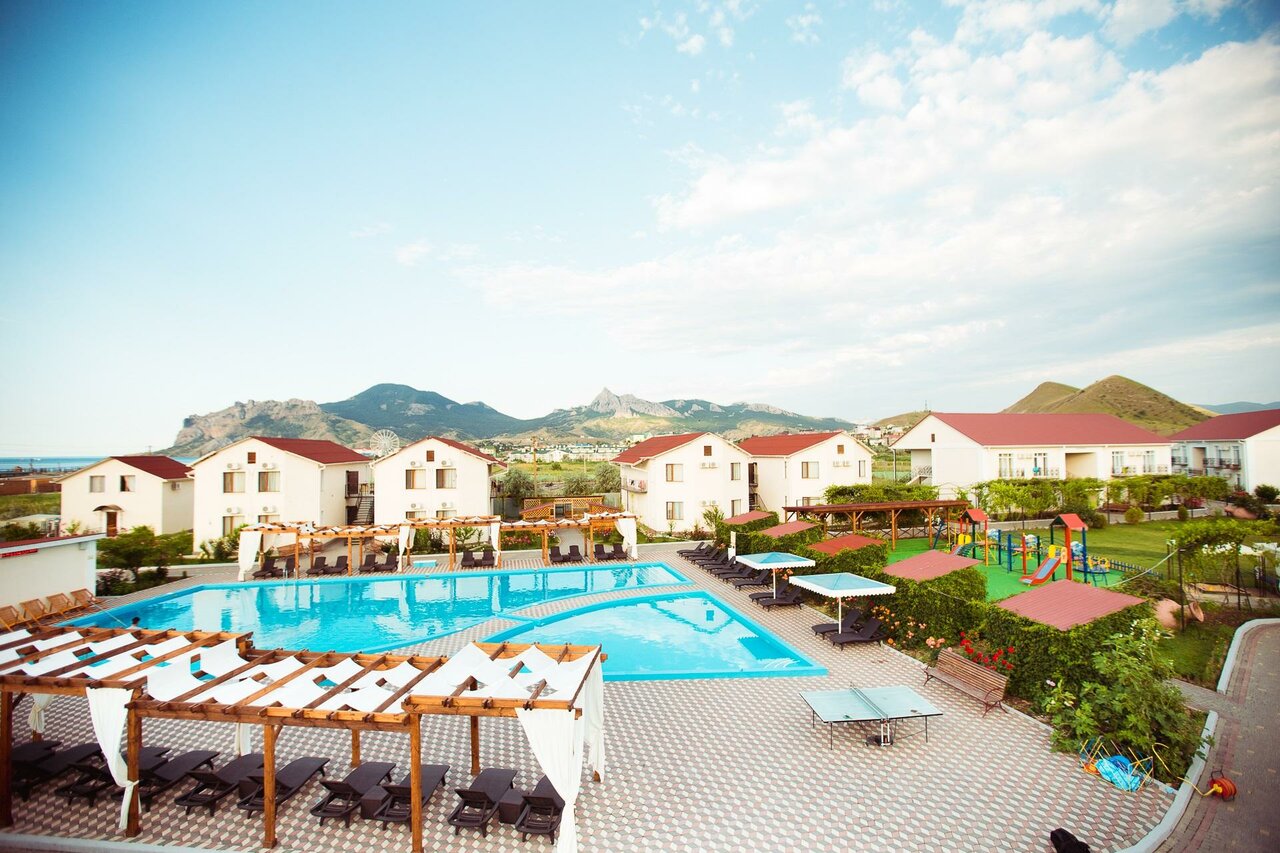 Отличный отель для отдыха всей семьёй. На территории много цветов, беседок, зон отдыха, детская площадка, бассейн ежедневно дезинфекцируют, можно не бояться, что ребёнок подцепит ротовирус. Завтраки шведская линия — широкий выбор от каши до пасты балоньезе. Шикарные виды на кара-даг и другие горы Коктебеля. Обязательно вернёмся ещё!