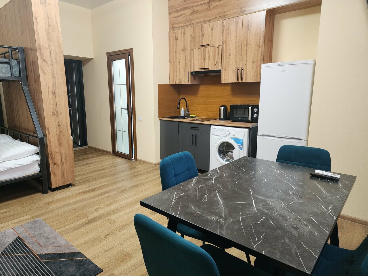- Чистота в номере.; Достойная комплектация номера.; Наличие всего необходимого, даже по сравнению с большими городами.; В целом положительное впечатление (оценка 5 звезд).