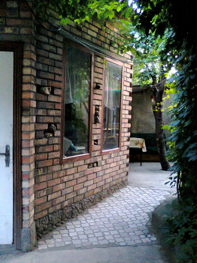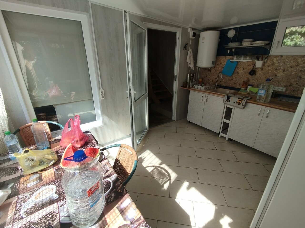 поселок Курортное, частный сектор. Небольшой номер на 2-х человек в мансарде на 2-м этаже. Есть маленькая кухня с газовой плиткой, холодильник, туалет с душем, балкончик. В номере все есть. Не жарко — находится в тени растений. Милые хозяева. Единственный минус — небольшие кровати.