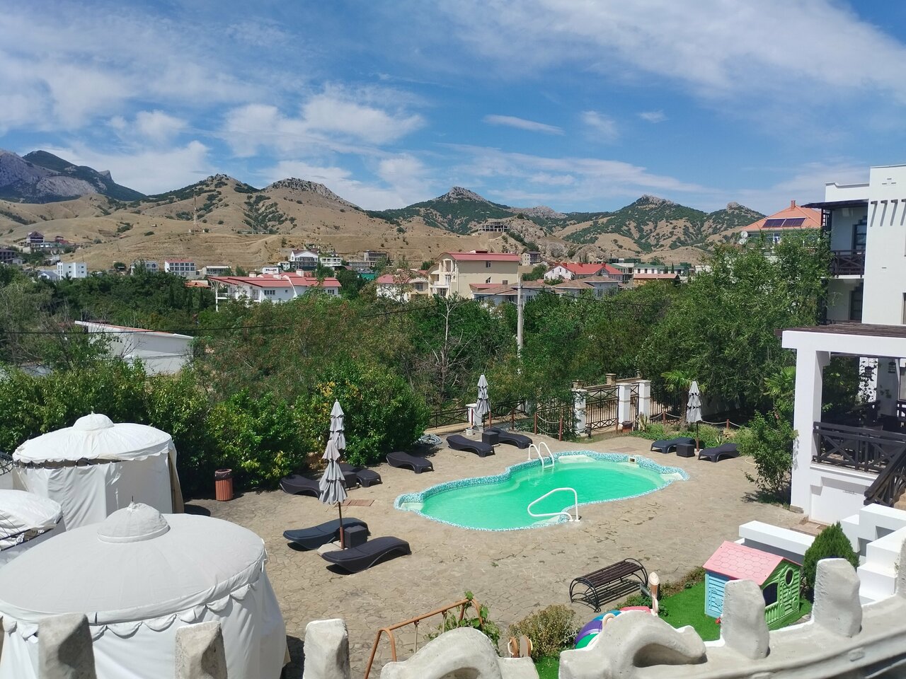 Очень уютно. Продуманный интерьер, хотя и не без орехов. Но сделано всё явно с целью угодить отдыхающим . Место удобное. Рядом пляж, дельфинарий и дорога в заповедник Карадага. Условия для приготовления пищи нормальные. Парковка грунтовка, но приличная. Мангал. Приятный вид с пригорка. Хозяин, будучи пилотом, может предоставить вам возможность полетать над регионом на своём личном самолёте. Для этого нужно будет доехать до горы Клеменьтьева, близ Коктебеля. Полчаса езды на машине.