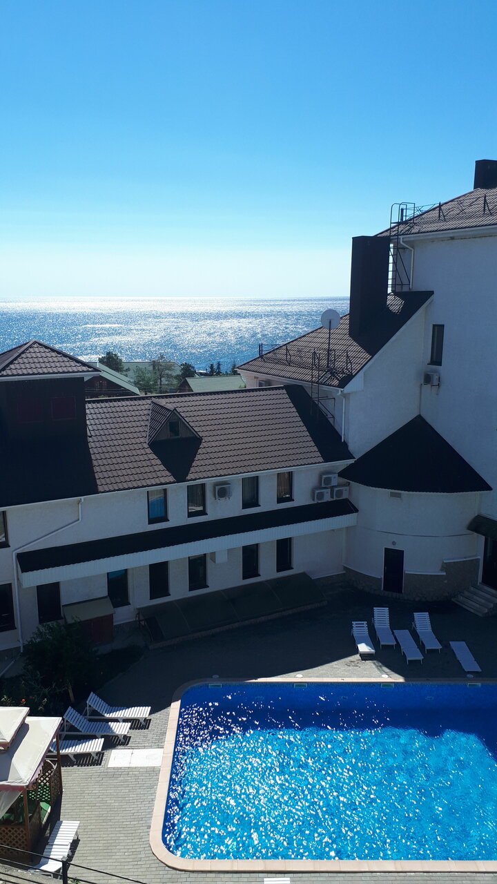Номер люкс с потрясающим видом на горы и море! Сам номер огромный с удобной мебелью, чистый. В номере кухонный уголок с набором посуды, чайником и микроволновкой. Есть общая кухня. Персонал и хозяин очень доброжелательный. До моря 5 минут неспешным шагом. Прекрасный гостевой дом, не хотелось уезжать. Рекомендую!