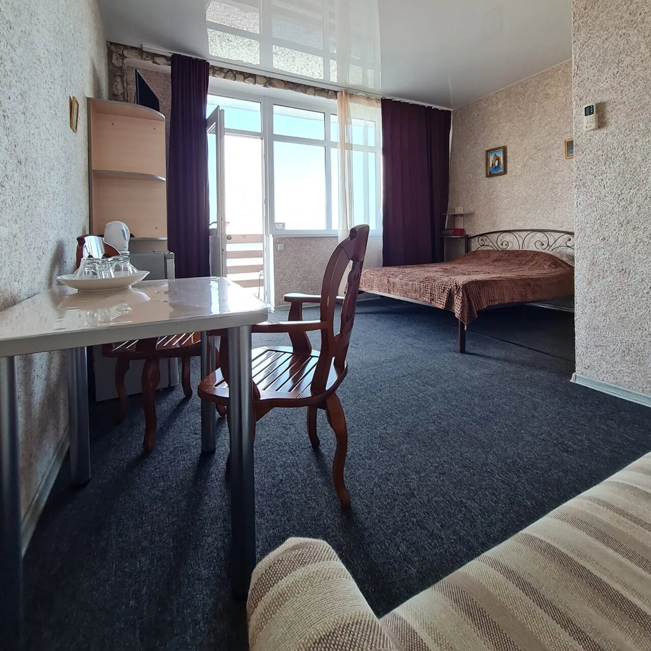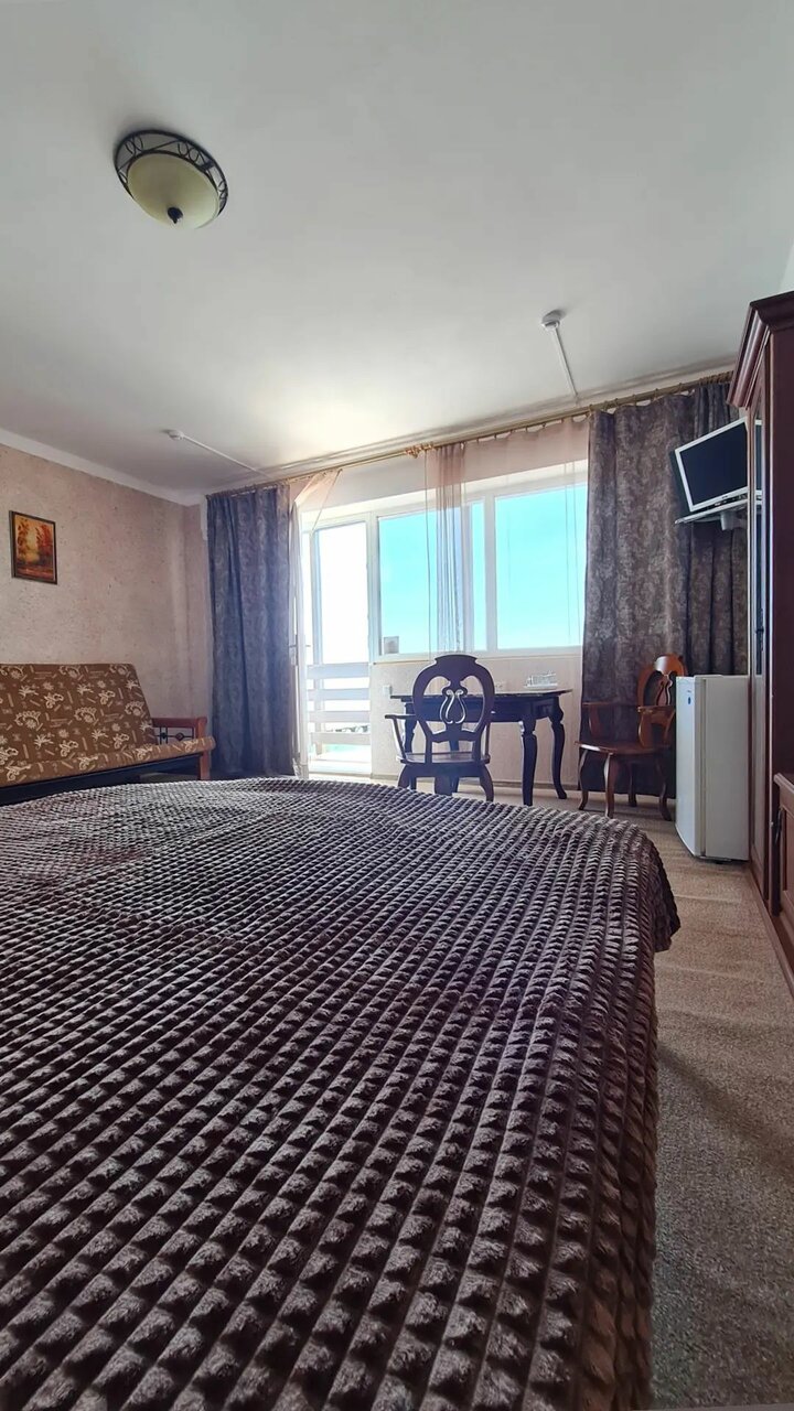 - В номере есть всё необходимое (холодильник, чайник, телевизор, кондиционер).; Красивый вид на море и закаты.; Чистый и уютный номер.; Тихий и спокойный отдых (для тех, кто любит уединение).; Вкусные и разнообразные завтраки (включены в стоимость).