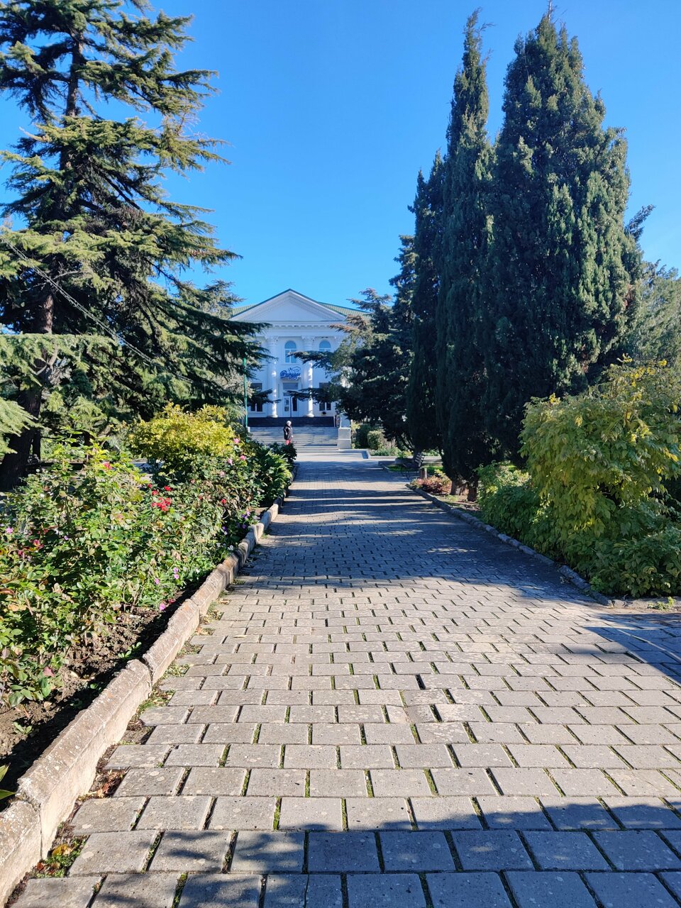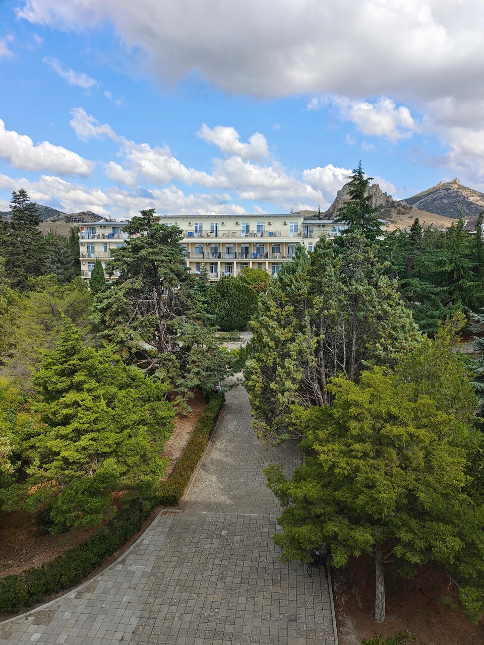 Отличная территория, много хвойных деревьев,крымские сосны,кипарисы, мозжевельники. Розы и другие цветы цветут несмотря,что уже октябрь. Море совсем рядом, выходишь из санатория прямо на набережную. Номера с удобствами, всё имеется