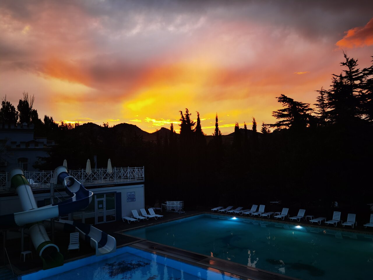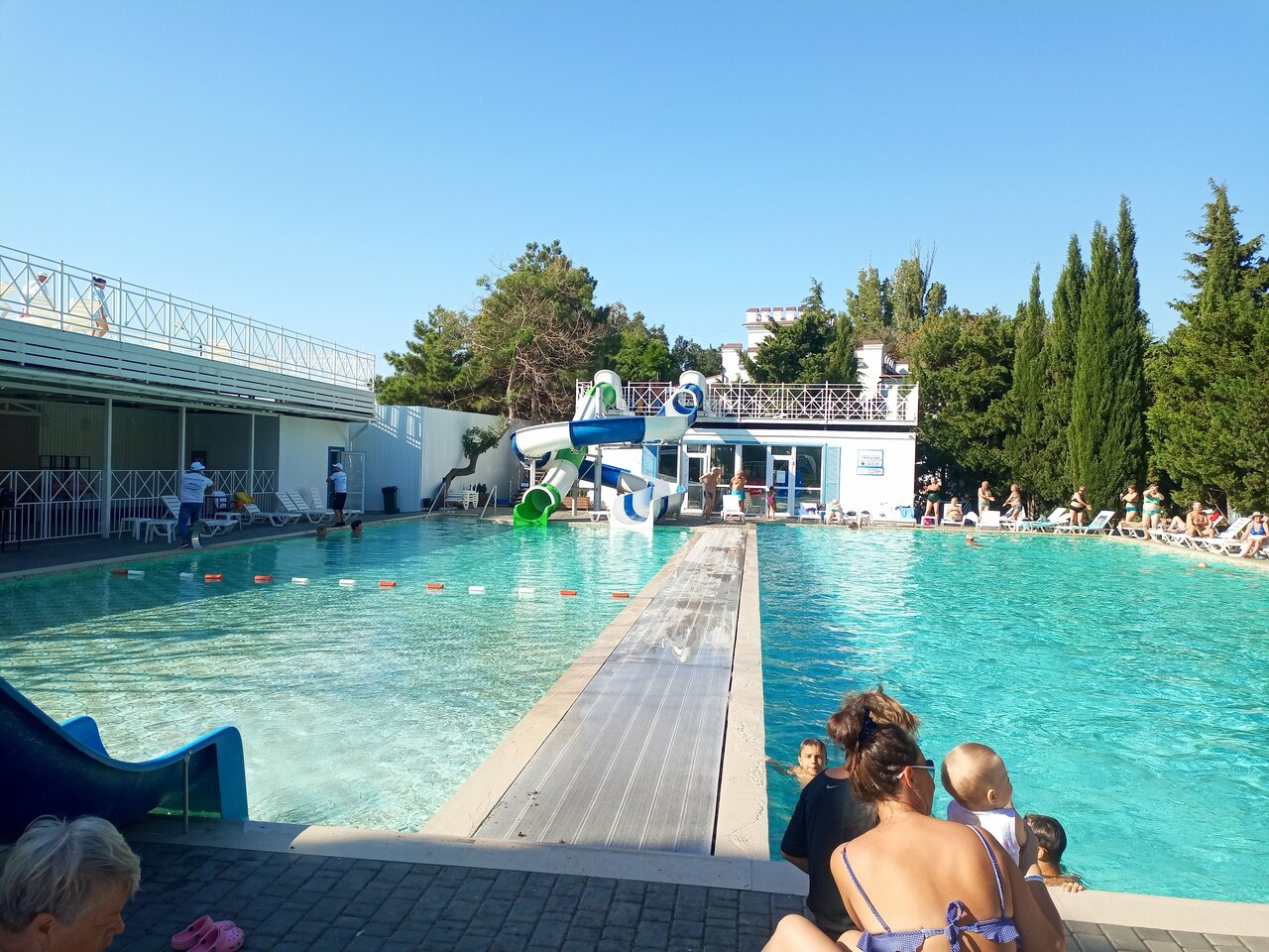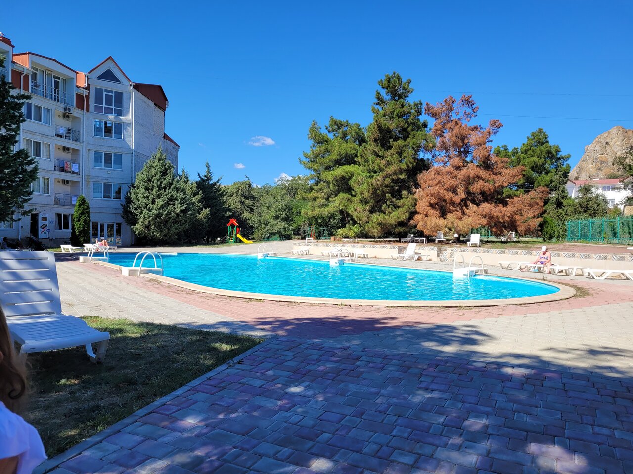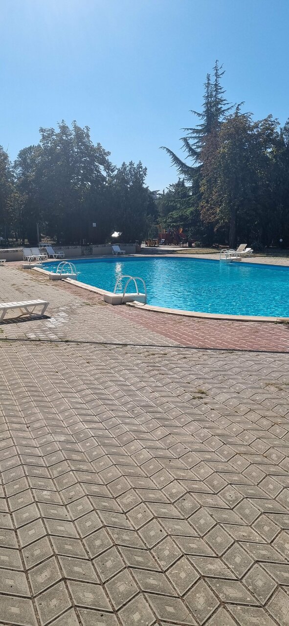 Была в крымском приморье в мае 2023 года. Территория просто шикарная, бассейны с подогревом. Не устроило только две вещи. Плохо организован шведский стол. Организация ужасная, или у нас люди такие голодные и второе: трёхместные номера. Двух любой знает, что это, а тут трёхместные. Взять одноместный не каждый сможет. Доплата 19 тыс. Но и в трёх местном это не отдых. Хотелось бы побольше лечения, но морской воздух и шикарный парк это сглаживают. Очень большое разнообразие экскурсий. Вообще впечатление очень хорошее. На набережной небольшое кафе, где чудесные чебуреки с сыром и помидорами