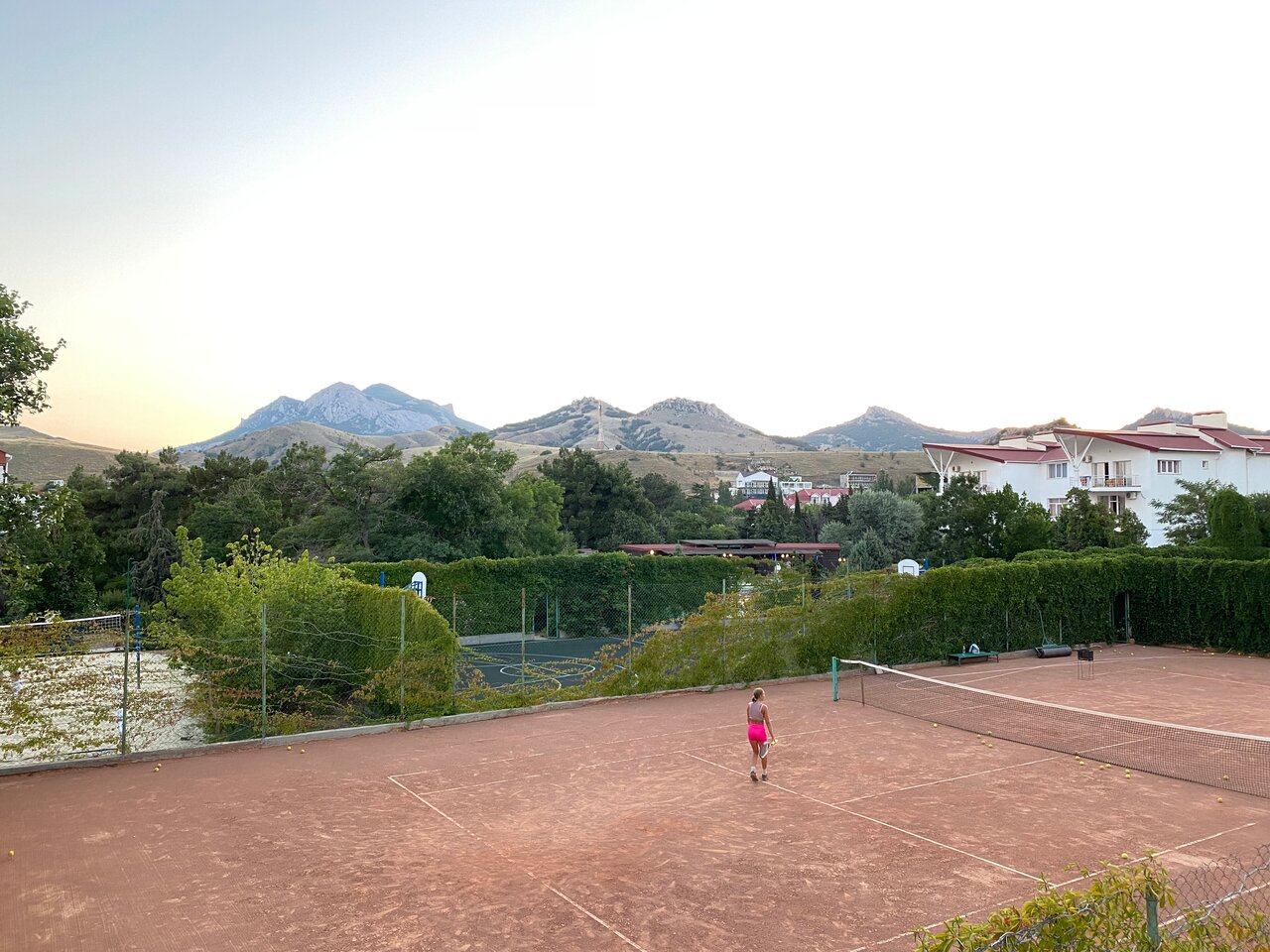 - Бассейн с горками, теннисные корты, площадки для волейбола.