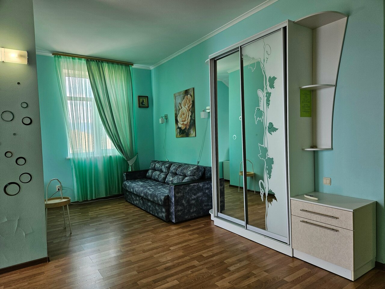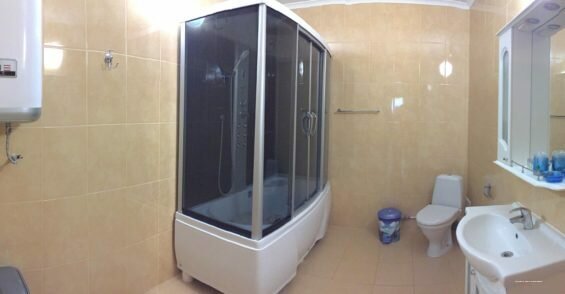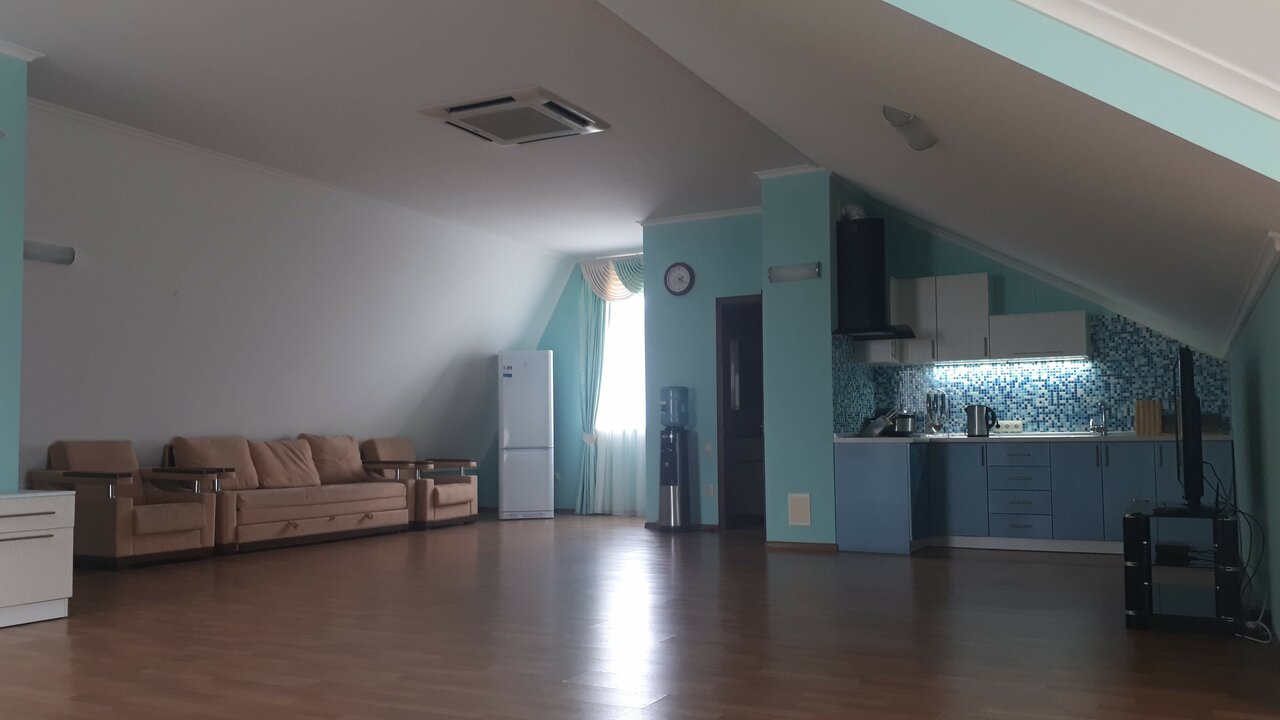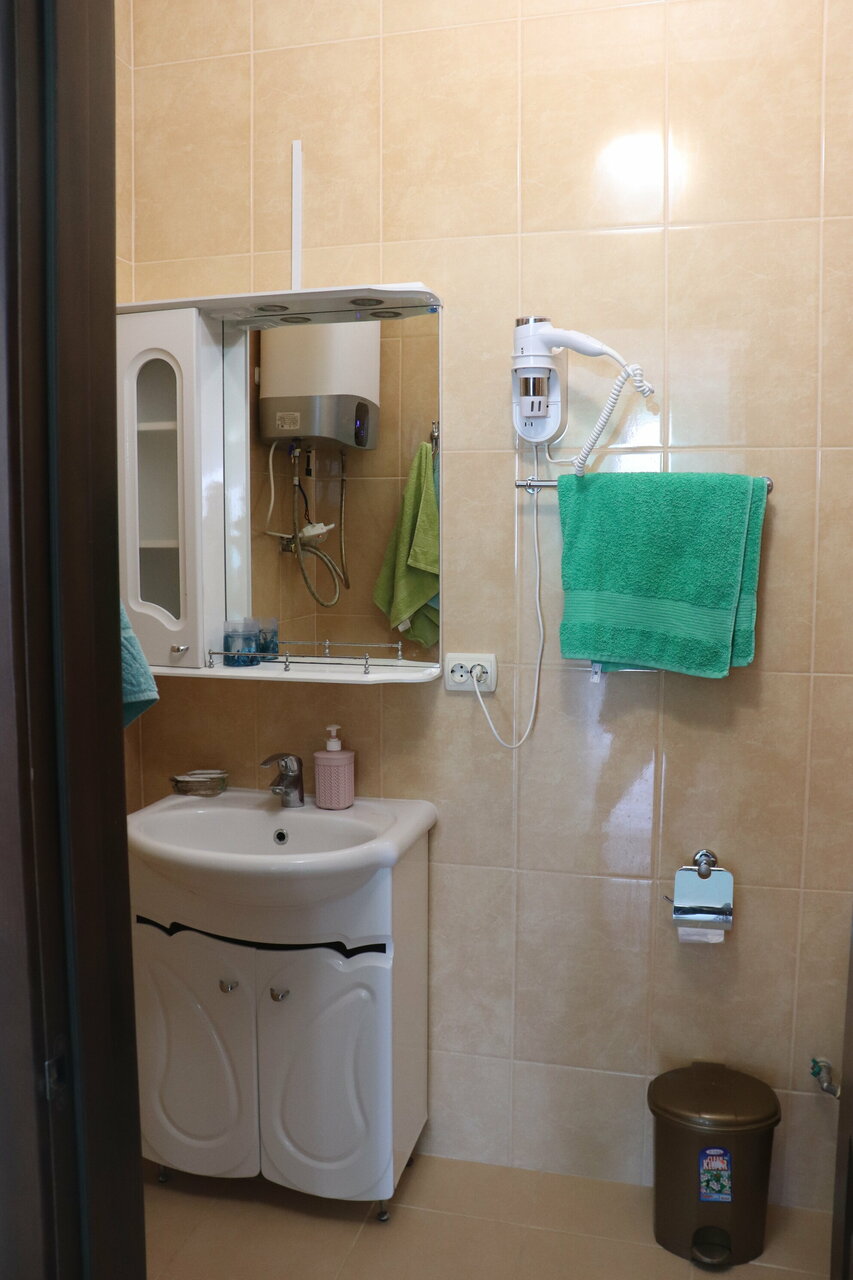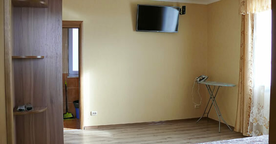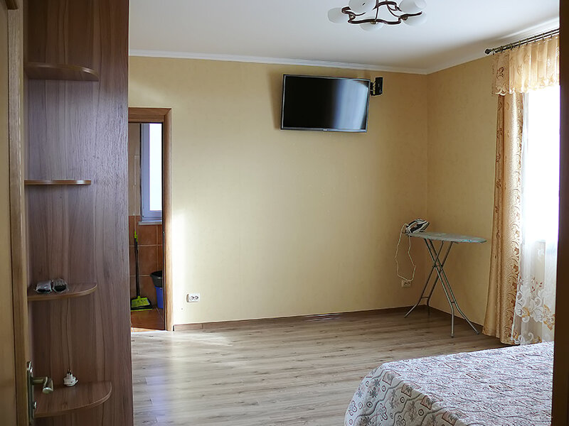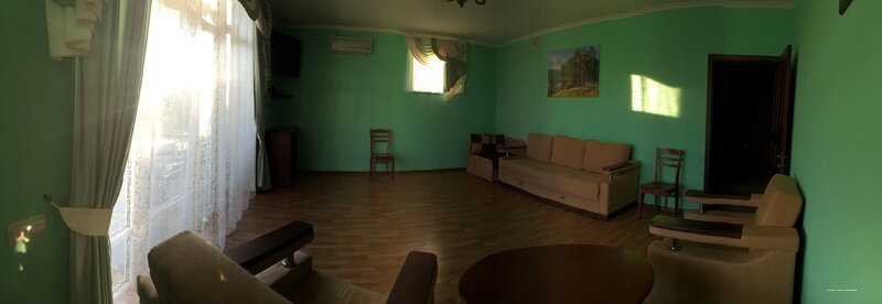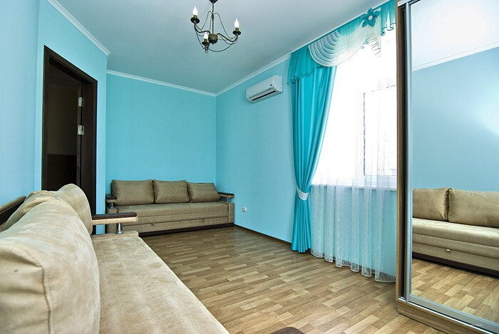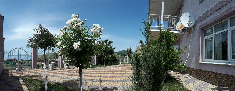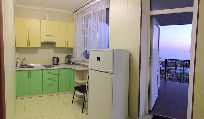 Дом новый, места много (даже в однокомнатных номерах), чисто. Хорошее месторасположение — вид на море и горы. Отдельная статья — прачечная! Заказали стирку и уехали развлекаться, когда вернулись — белье не только постирано, но и аккуратно развешено на сушилке у номера. Не могу не упомянуть кухню — чистенькая, аккуратненькая, идеальный набор посуды и аксессуаров. В Курортном уже шестой раз, на мой взгляд одно из лучших предложений.