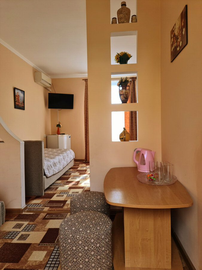 Уютный мини отель, приятные, доброжелательные собственники. Валентин и Татьяна очень стараются наш отдых сделать комфортным и незабываемым. Красивый вид с террасы. Тихое место. В номерах все необходимое. В некоторых есть мини кухня.