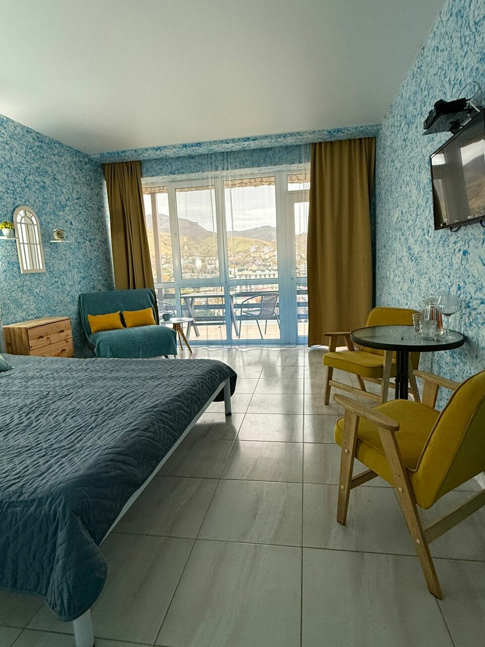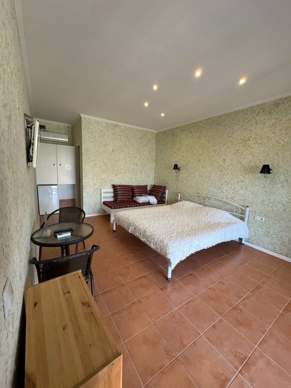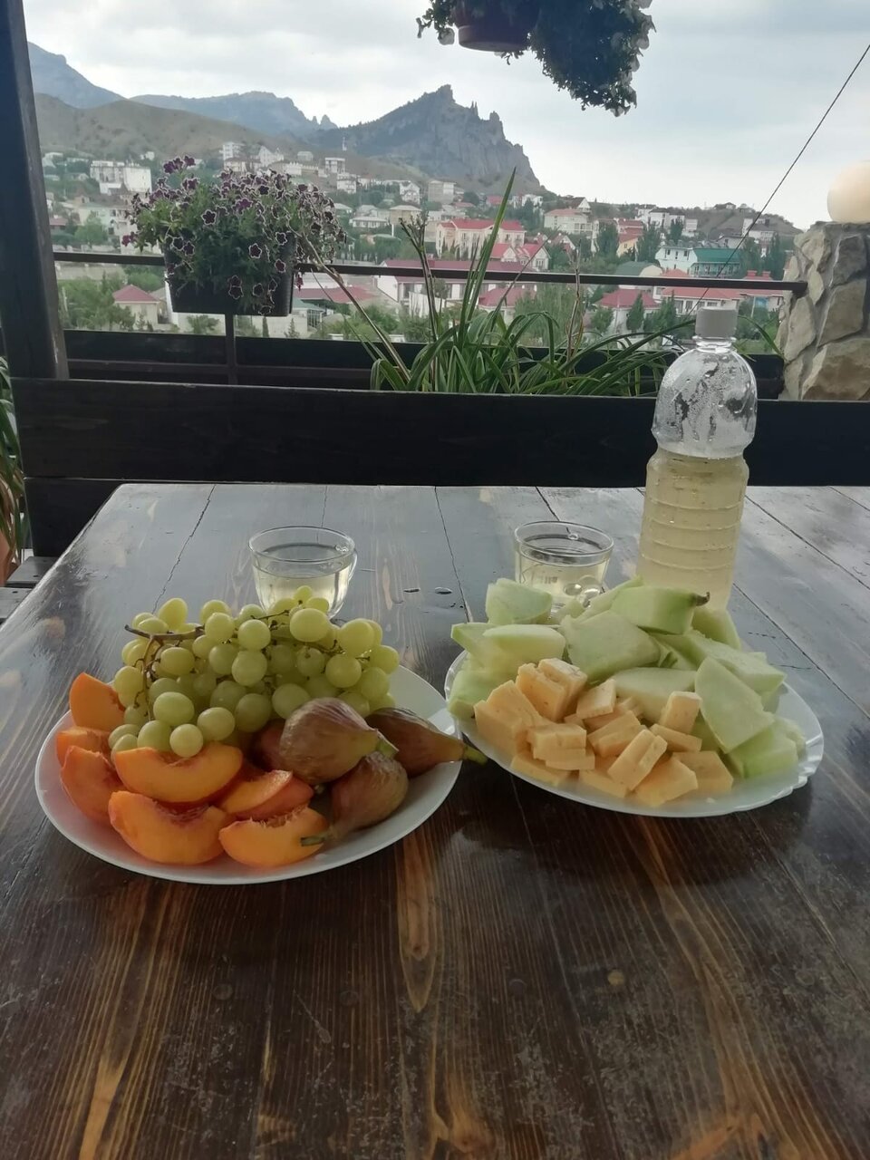 Плюсы: Ранний заезд, близость к морю, вид на гору Карадаг. Из минусов: общая кухня и чайник, по тв работают 4 канала.