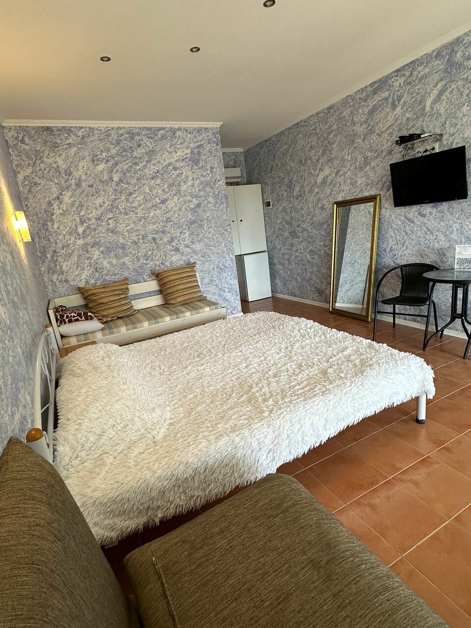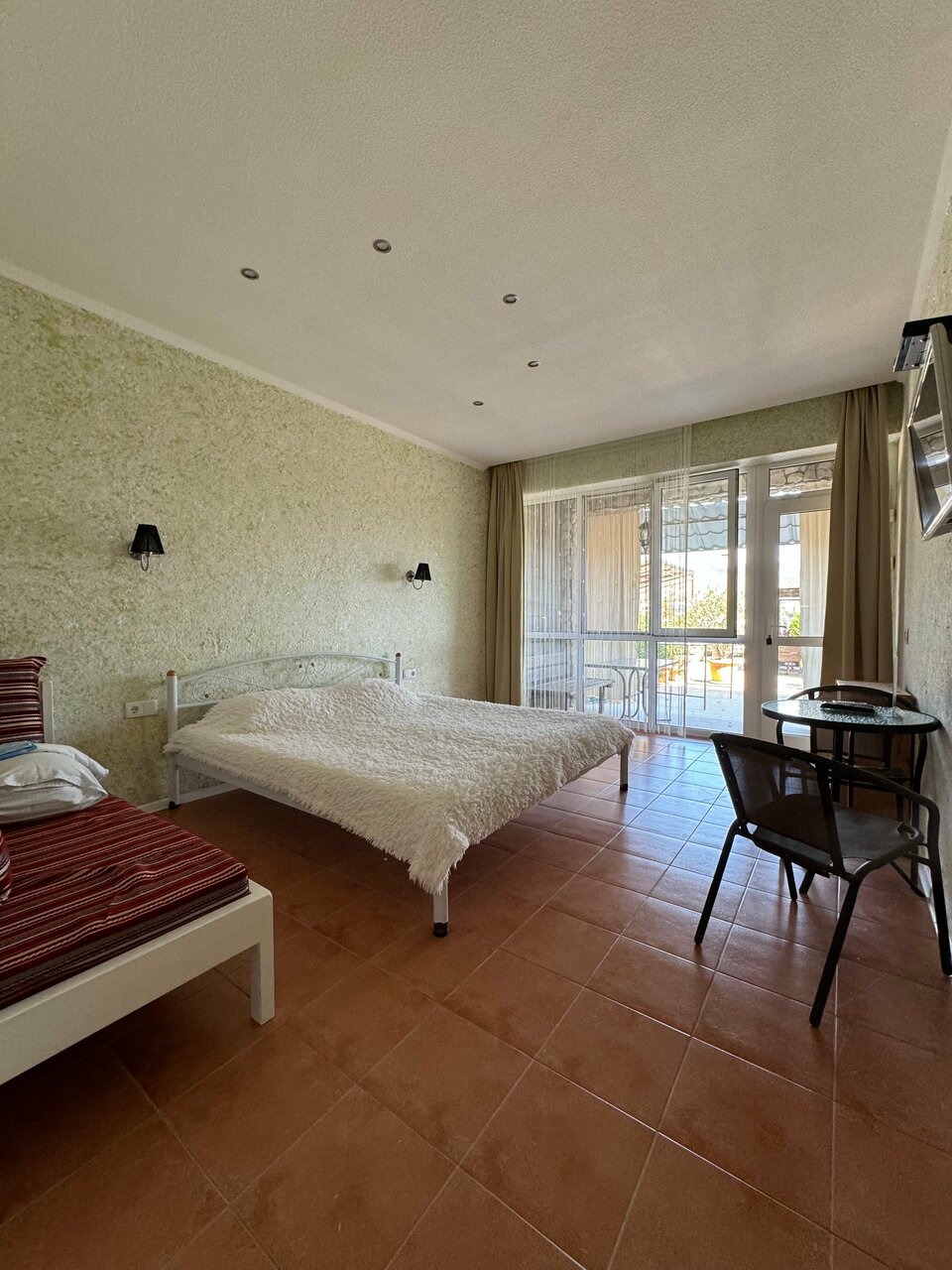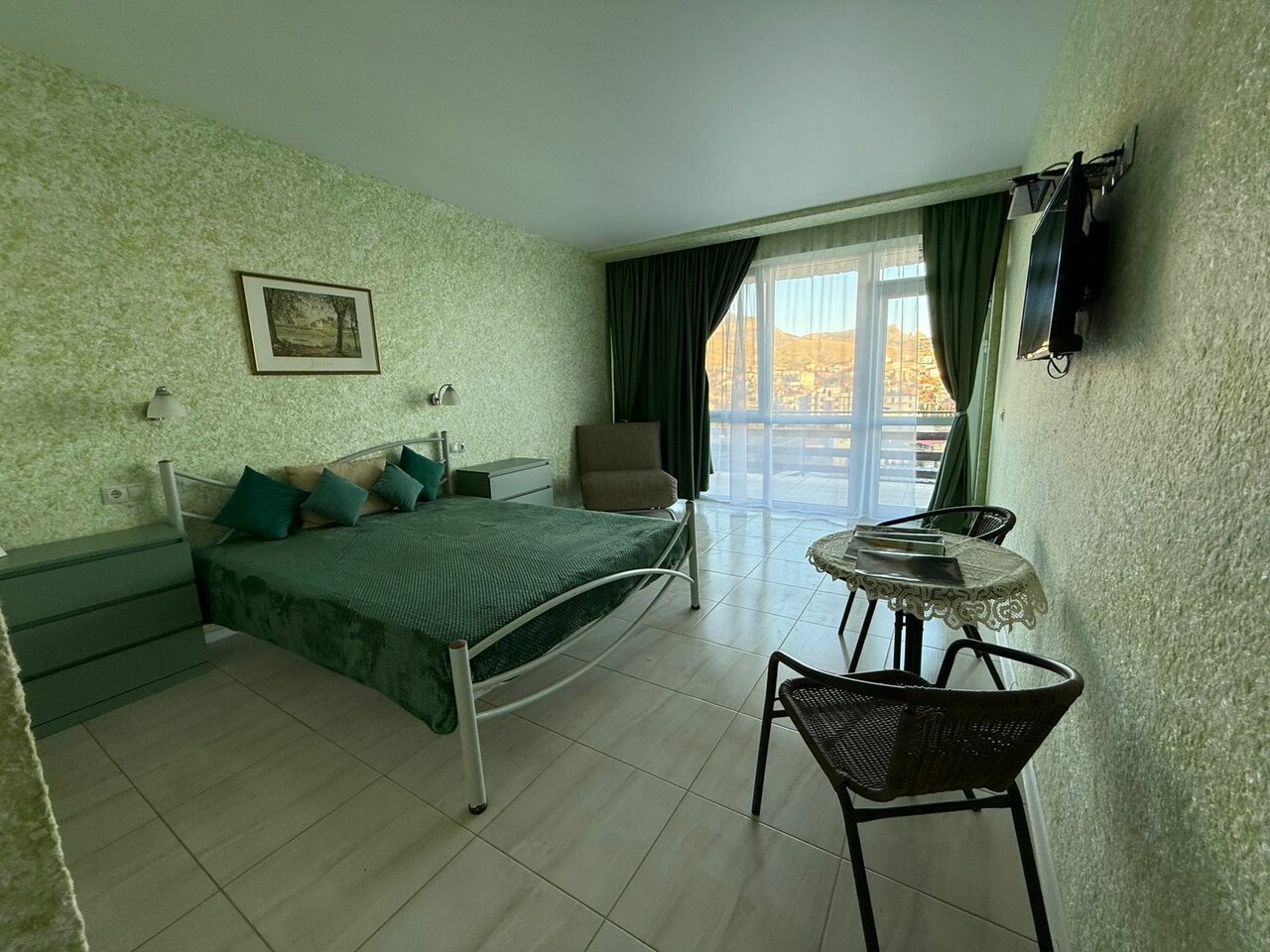 Плюсы: Ранний заезд, близость к морю, вид на гору Карадаг. Из минусов: общая кухня и чайник, по тв работают 4 канала.