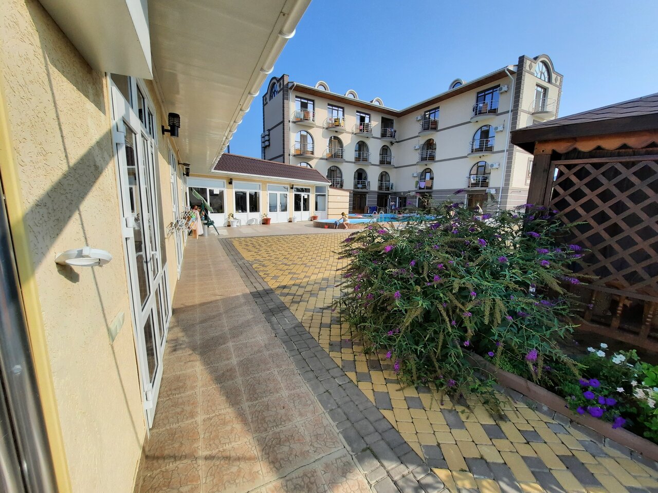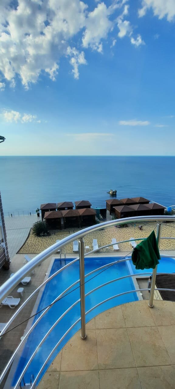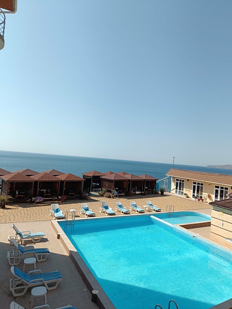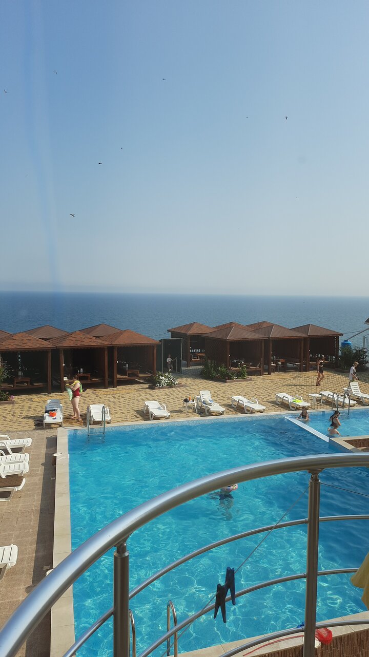 Отель не плохой, но у нас с ними произошла неприятная ситуация. Мы бронировали номер нам выслали видеообзор стандарт и улучшенный, мы взяли улучшенный, в итоге приехали и нас заселили в стандарт , а мы заплатили за улучшенный. Они с нами спорили что это то что надо. Решилось тем что они нам вернули разницу. В номере чайник не работал, лейка в душе плохо текла, муравьи на полу, ручки у шкафов поломаны, фена нет. Лестница к морю убивает когда поднимаешься с морязавтраки шведский стол можно найти по себе что будешь кушать, но надо им говорить чтобы принесли если закончится они за этим не смотрят. Обед и ужин можно заказать, если не хотите спускаться по лестнице, кухня достойная. Девчонки исполнительные.