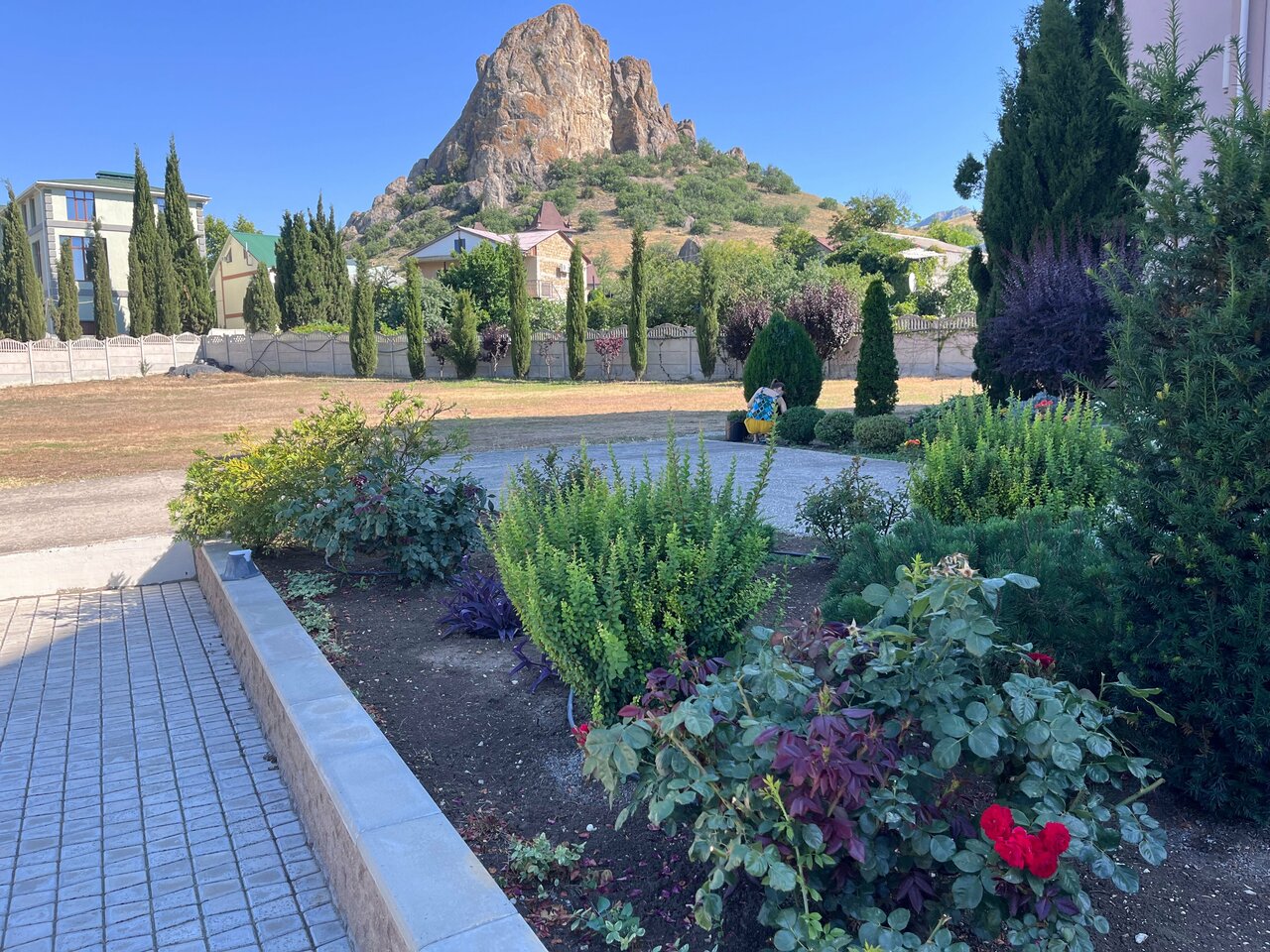 Отель, территория чистая, везде цветы, клумбы ухоженные, вид гор Карадагского природного заповедника. Бассеин вода чистая, каждый час работники обходят его в поисках какой нибудь соринки, с утра пылесосят дно, с подсветкой, имеется детский лягушатник. Не большая площадка для игр. Стоянка авто полноценное парковочное место с возможным выездом. В цокольном этаже столовая шведский стол, всё вкусно по домашнему объём съедаемого не ограничен-поправился за время отдыха. Номер твёрдая четвёрка. Уборщицы чуть ли не бегают за тобой затерая и убирая следы с пола. Я даволен. И само расположение его в п. Курортном, в тихом без шумном месте,где нет транзитного транспорта, толпы людей и другого шума. Море в пешком 10 минут. Мне понравилось на следующий год однозначно в нем.