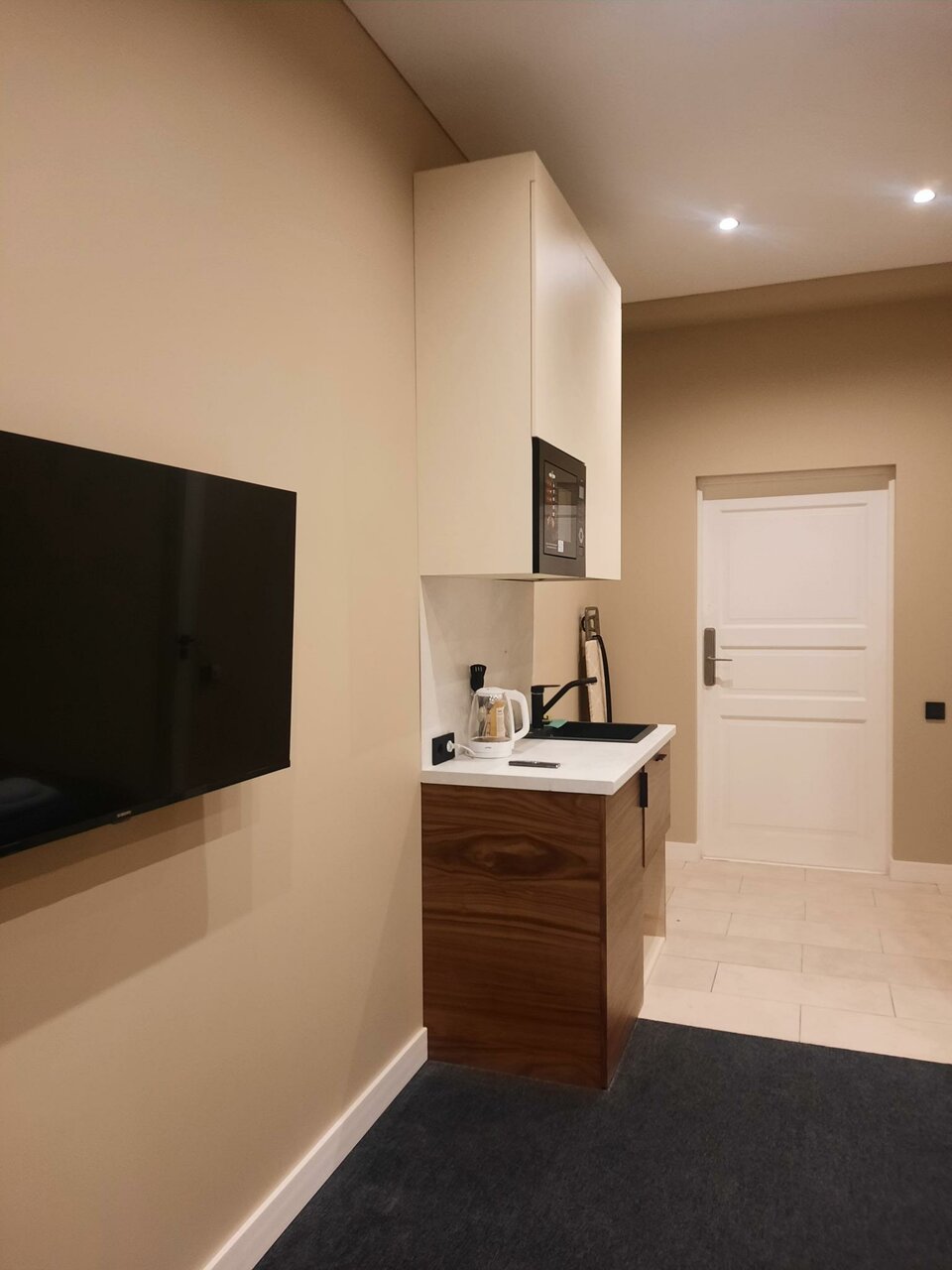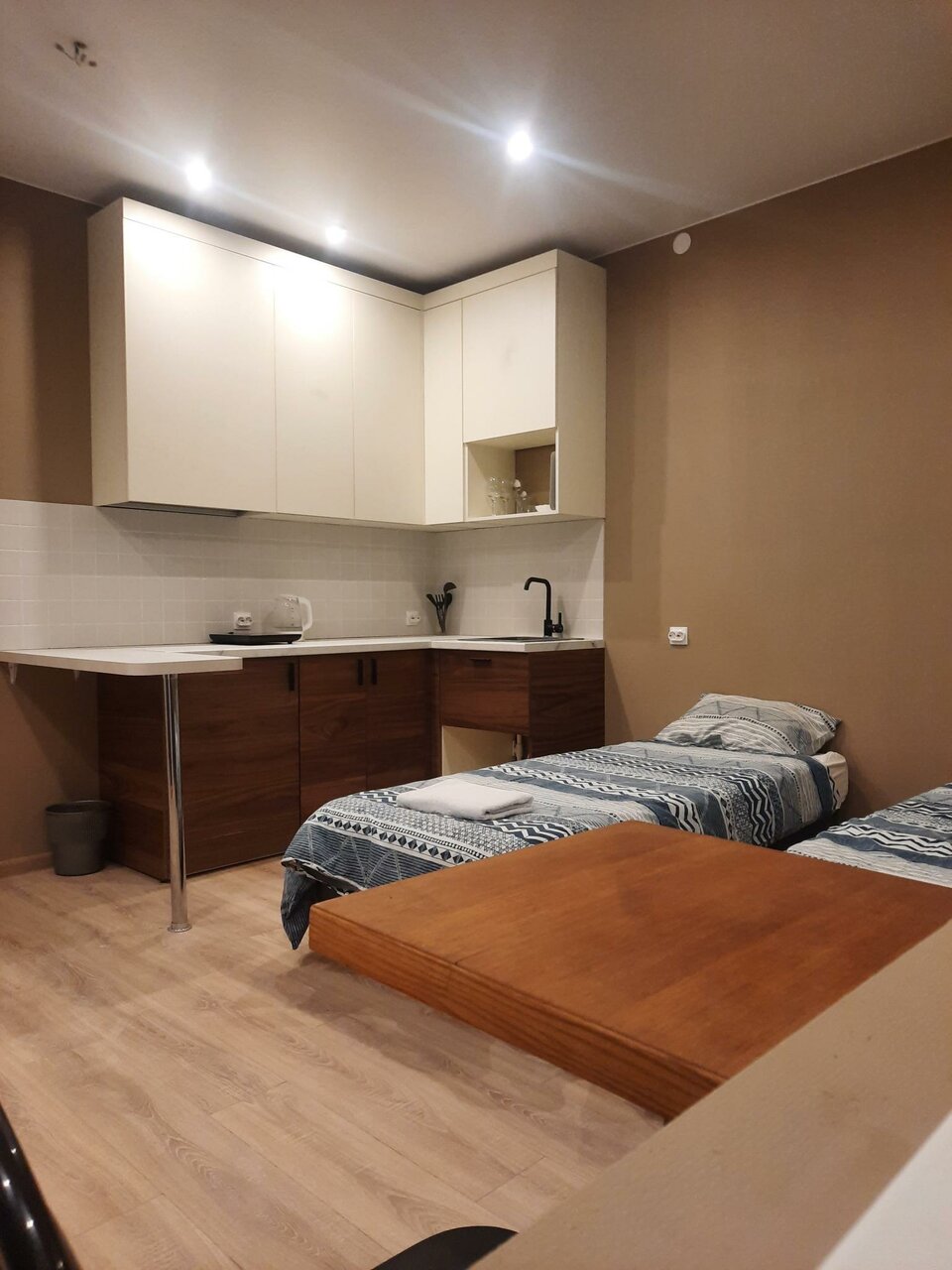 - Наличие кухни и кухонных принадлежностей.; Хорошая обратная связь от администрации.; Вежливый и приветливый персонал.; Тёплые номера.; Новая мебель и техника.