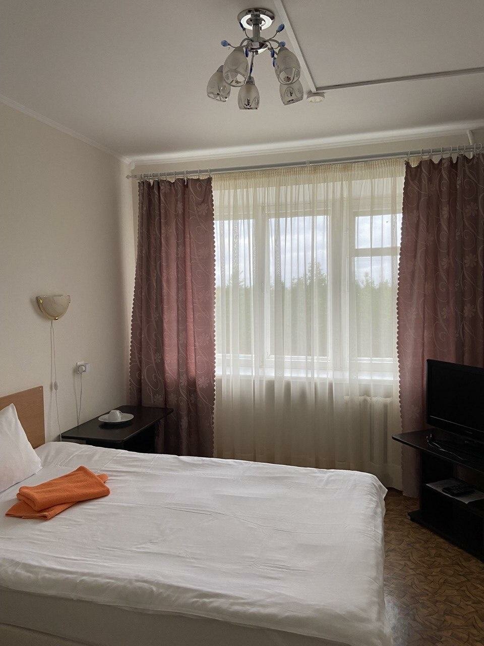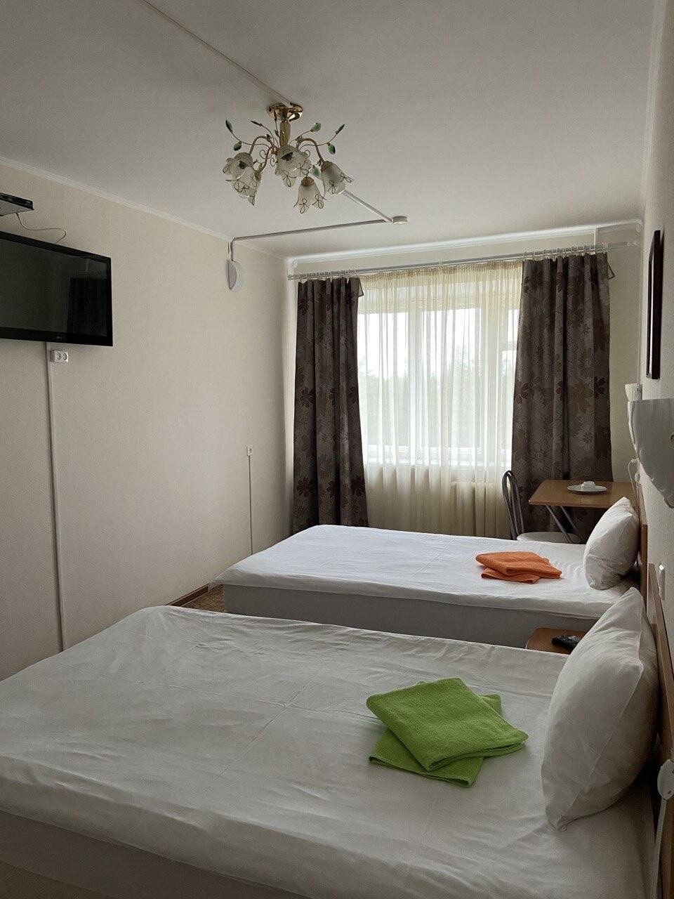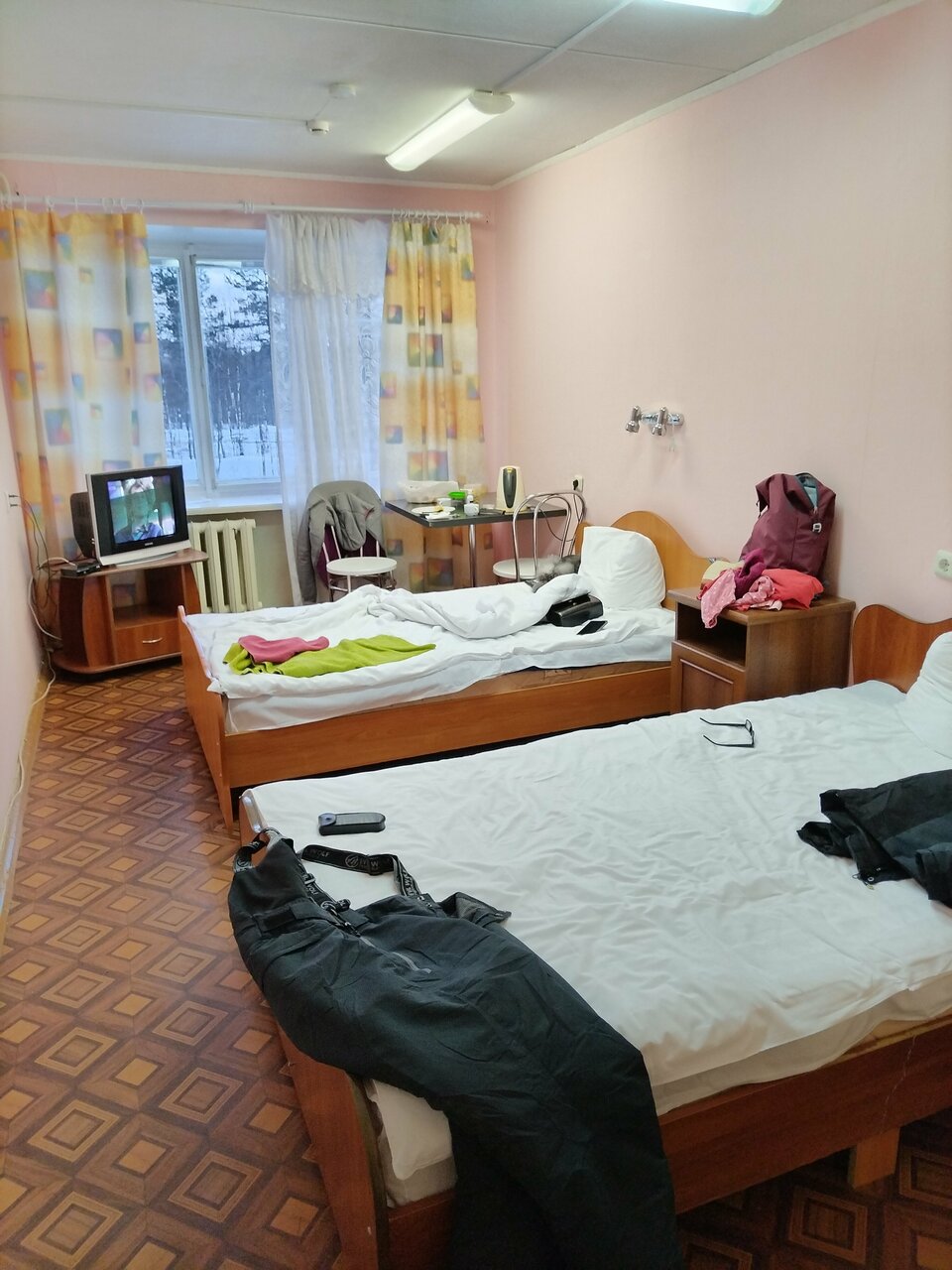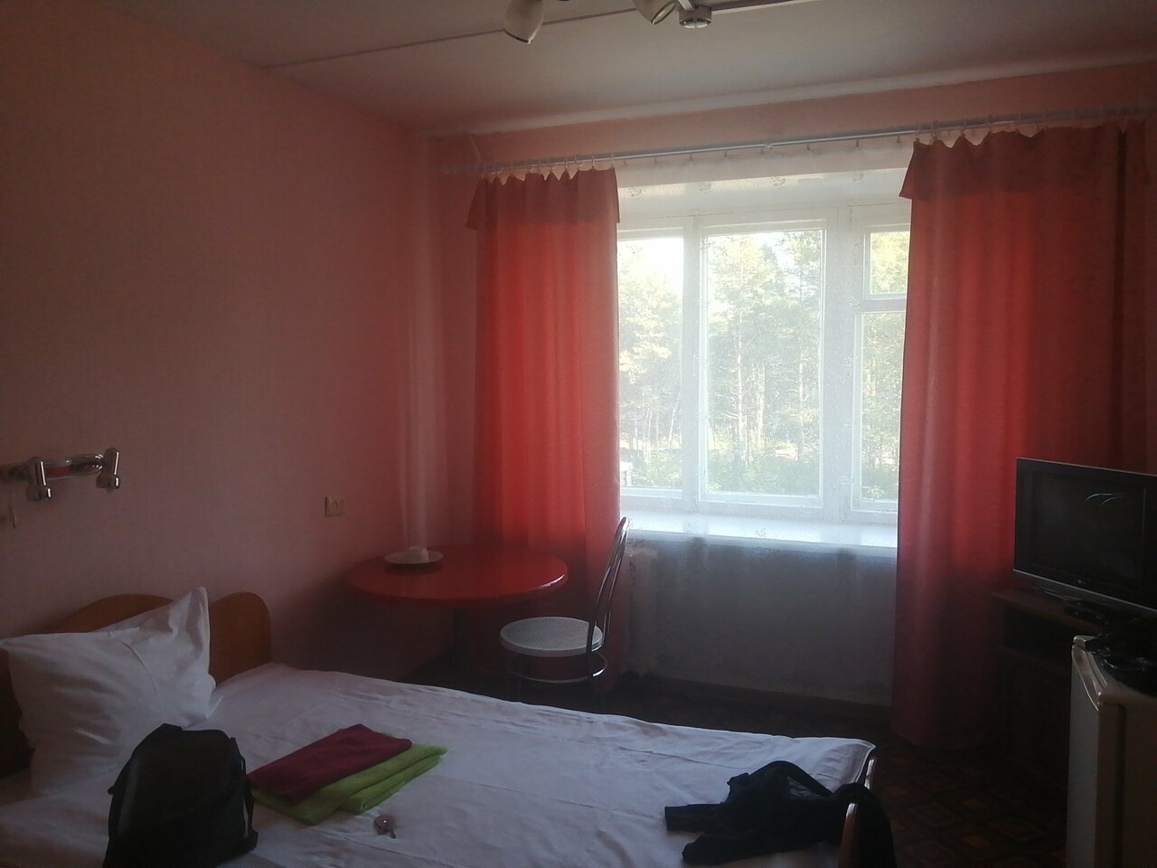 Гостиница без звезд. Если честно-такую нужно поискать. Гостиница из разряда назад в СССР -с 2019 года ровным счетом ничего не изменилось. С питанием беда, его просто нет, НИКАКОГО. Селитесь надолго — запасайтесь продуктами . Парковка за деньги, 300 в сутки. Лифта, пандуса нет. Номера в блоках: в предбанникехолодильник и чайник, душ и туалет , далее две двери: одноместный(2500) и двухместный(3500).В номере: старый тв(ЭЛТ), кровать, тумба, стул, креслице, стол, мелкая тарелка,кофейная кружка.Отопление работает (конец мая).