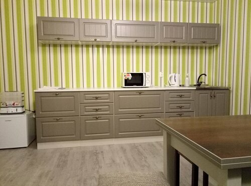 Хороший отель. Отдельно есть кухня(.посуда. Все необходимое .) Большое пространство. Можно посидеть с друзьями.. Курилка. Номера просторные. Ванная комната большая. На этаже холодильник. Микроволновка.