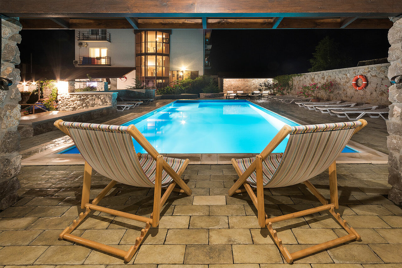 Заявлено, что отель 3 звезды. По факту 3 звезд нет. В целом все понравилось, удобно отдыхать семьей, с детьми. Жаль, что вода в бассейне без подогрева, в летние месяцы может и прогревается вода, а в сентябре уже нет. Рекомендую.