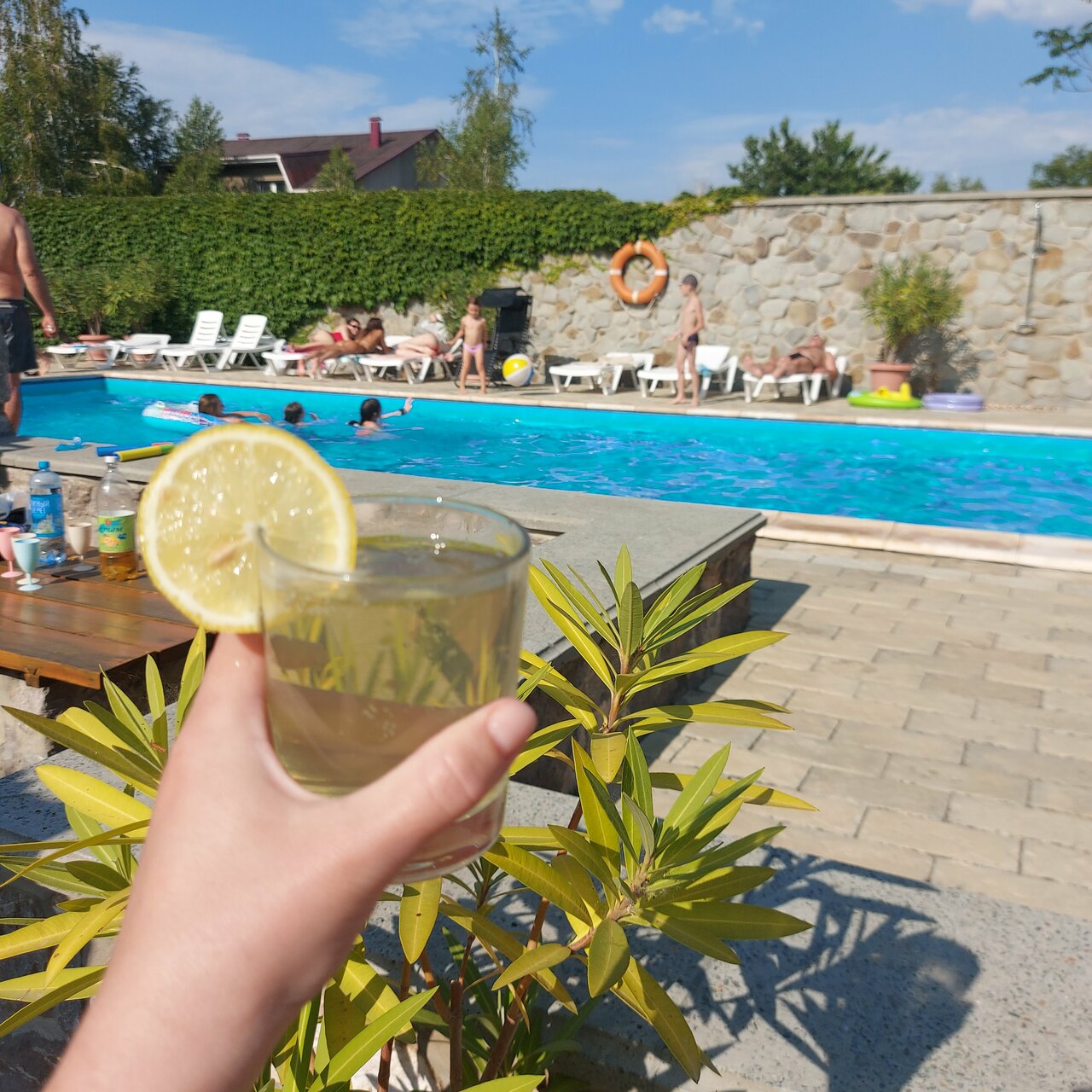 - Вода в бассейне без подогрева (холодная в сентябре).