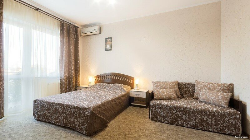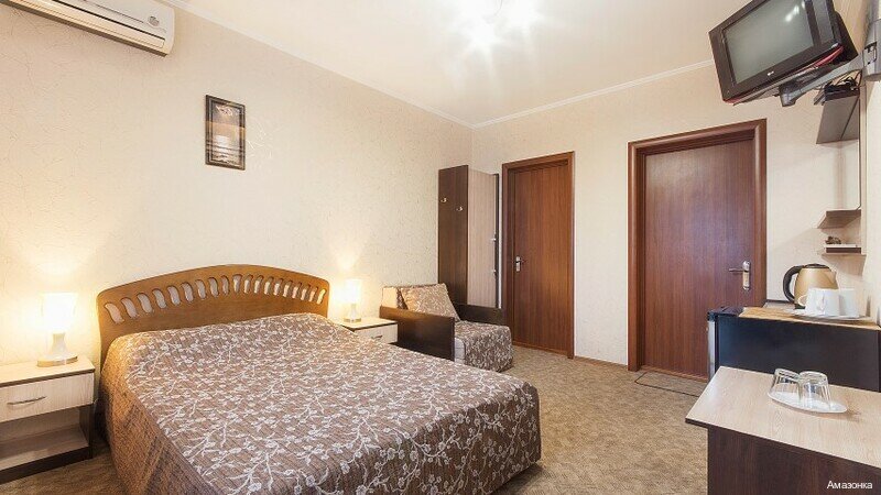 Гостиница «Амазонка» расположена в пгт Николаевка по адресу: Чудесная улица, 17. Это трехзвездочный отель с круглосуточным режимом работы, предлагающий комфортное размещение вблизи моря.