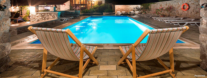 Отель Амазонка — лучший из отелей в Николаевке. Отдыхали мы с мужем и дочкой (2 года) с конца августа — сентябрь (2 недели) 2019. Отель чистый, уютный. В номерах имеется все необходимое для комфортного отдыха. Ежедневная уборка. Закрытая территория отеля шикарна, чистейший бассейн, зона отдыха, мангальная зона, шезлоги. Все продуманно до мелочей. Для деток качели, батут, 2 зоны с подушками, вечером можно посмотреть мультфильмы. Описание отеля и фотографии полностью соответствуют действительности. До моря минут 5 ходьбы, по пути рынок и различные кафе. Мы остались в восторге от отеля Амазонка в Николаевке. Следующим летом планируем вернуться вновь. Спасибо вам за отдых. Галина, Юрий и доченька Геля (Петрозаводск)