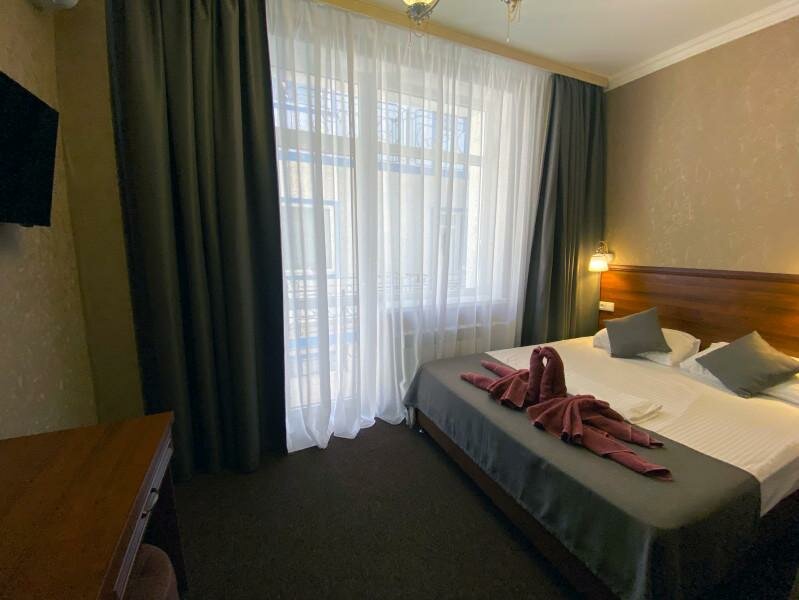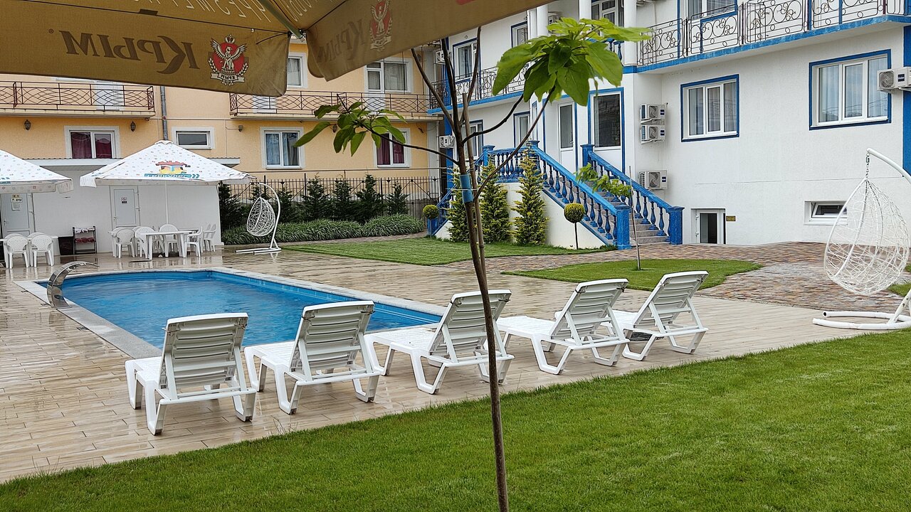 Отдыхали в начале июля, в целом все понравилось: шведский стол 3 раза в день с удобным расписанием, ухоженная территория, есть место для авто, хороший wi-fi. Только кофе-машину надо заменить, очень хочется с утра выпить кофе, а не воду с молоком )))) С утра и до вечера есть аниматор, который может развлечь детей Есть детская комната и лабиринт, детская площадка. Вообще отель с упором на тихий семейный отдых (кому нужны тусовки до 2-х ночи в бассейне — лучше сюда не ехать:))) Стены толстые, на полу в коридорах ковры, рядом нет кафе и баров, реально можно отоспаться в тишине Вода в бассейне тёплая, но не хватает зонтиков над лежаками. До моря пешком минут 5-7, можно ходить на пляж базы отдыха Скиф, там есть душ, кафе и лежаки. Там же есть рынок, кафе, дискотека, магазин. Спасибо Администрации и персоналу, все милые и вежливые, отдельное спасибо детскому аниматору Лине