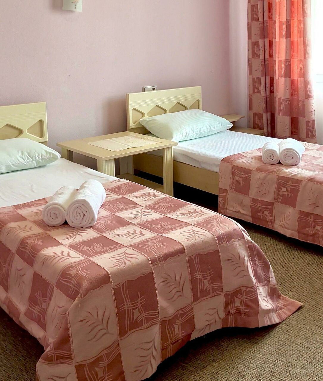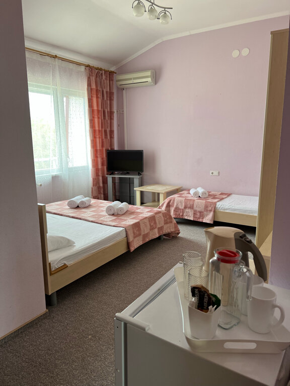 Мини-отель категории 3★ в пгт Николаевка (ул. Чудесная, 2/43), расположенный в 200 м от песчано-галечного пляжа. Круглосуточно принимает гостей, предлагая номера (2500–4000 ₽/ночь) с кондиционером, санузлом, холодильником и Wi-Fi.
