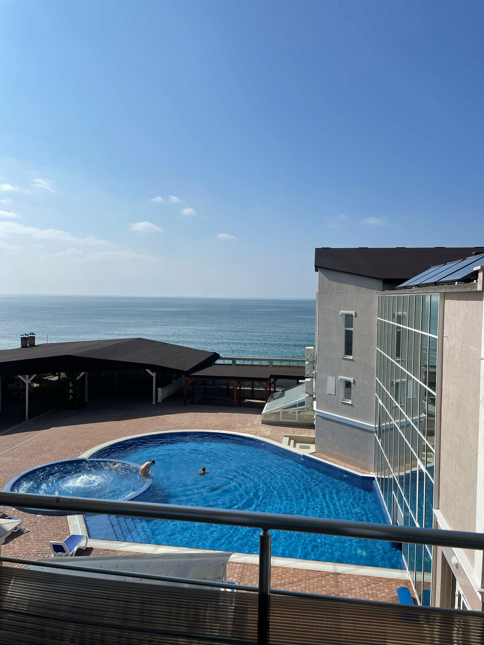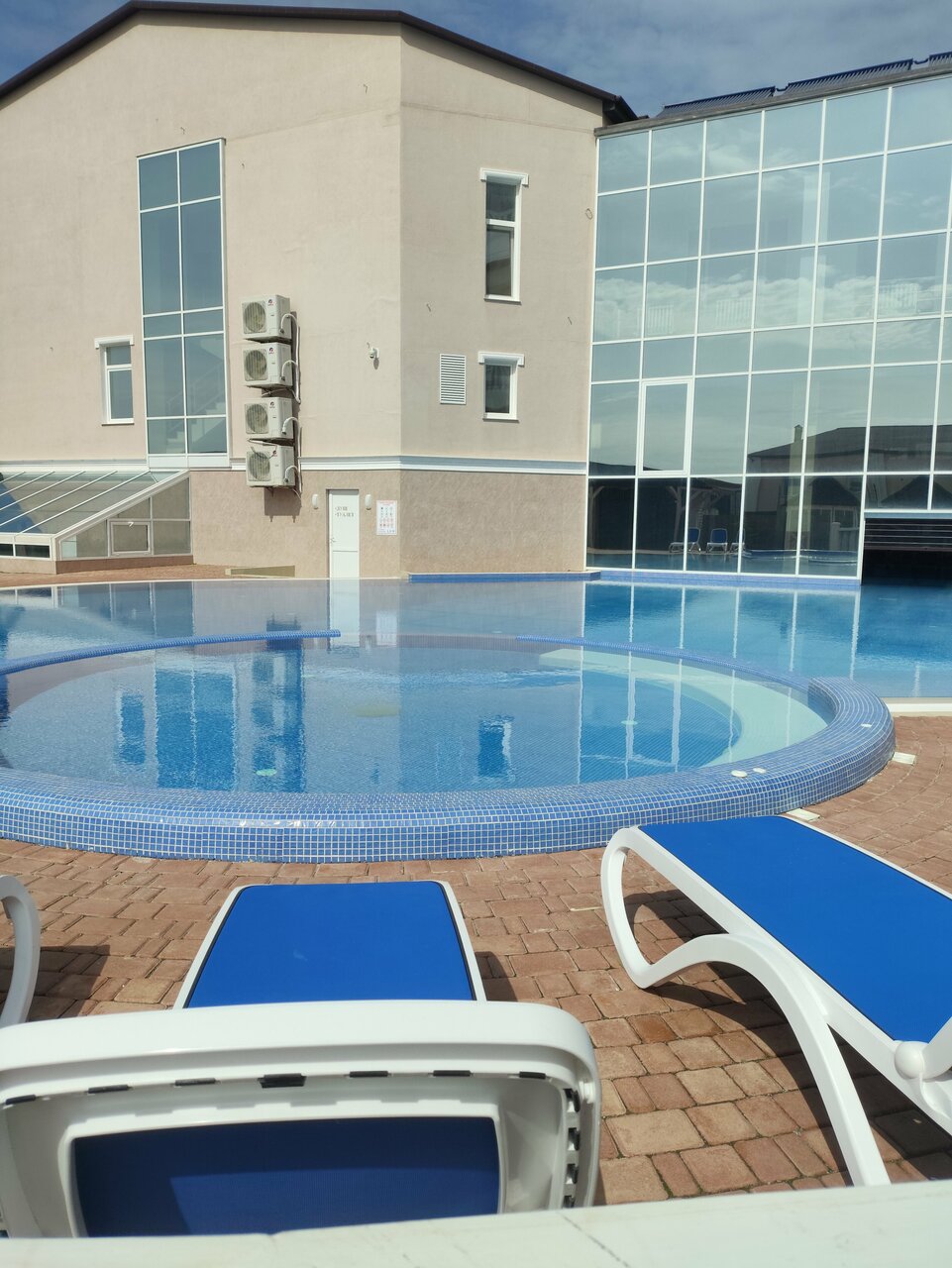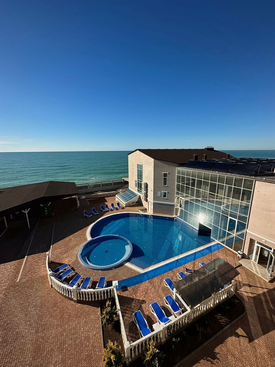 Побывали и здесь. Плюсы прекрасный теплый бассейн с выходом на улицу. Финская сауна чтобы согреться. Номера чистые и просторные. Выход к морю близко. Суши потрясающие большое спасибо повару. Вечером развлекательная программа живой звук певицы Юлия Джус. Приветственное шампанское при заселении и на вечере сыграло роль. Замечательное обслуживание администратор и официантка Алена супер.
