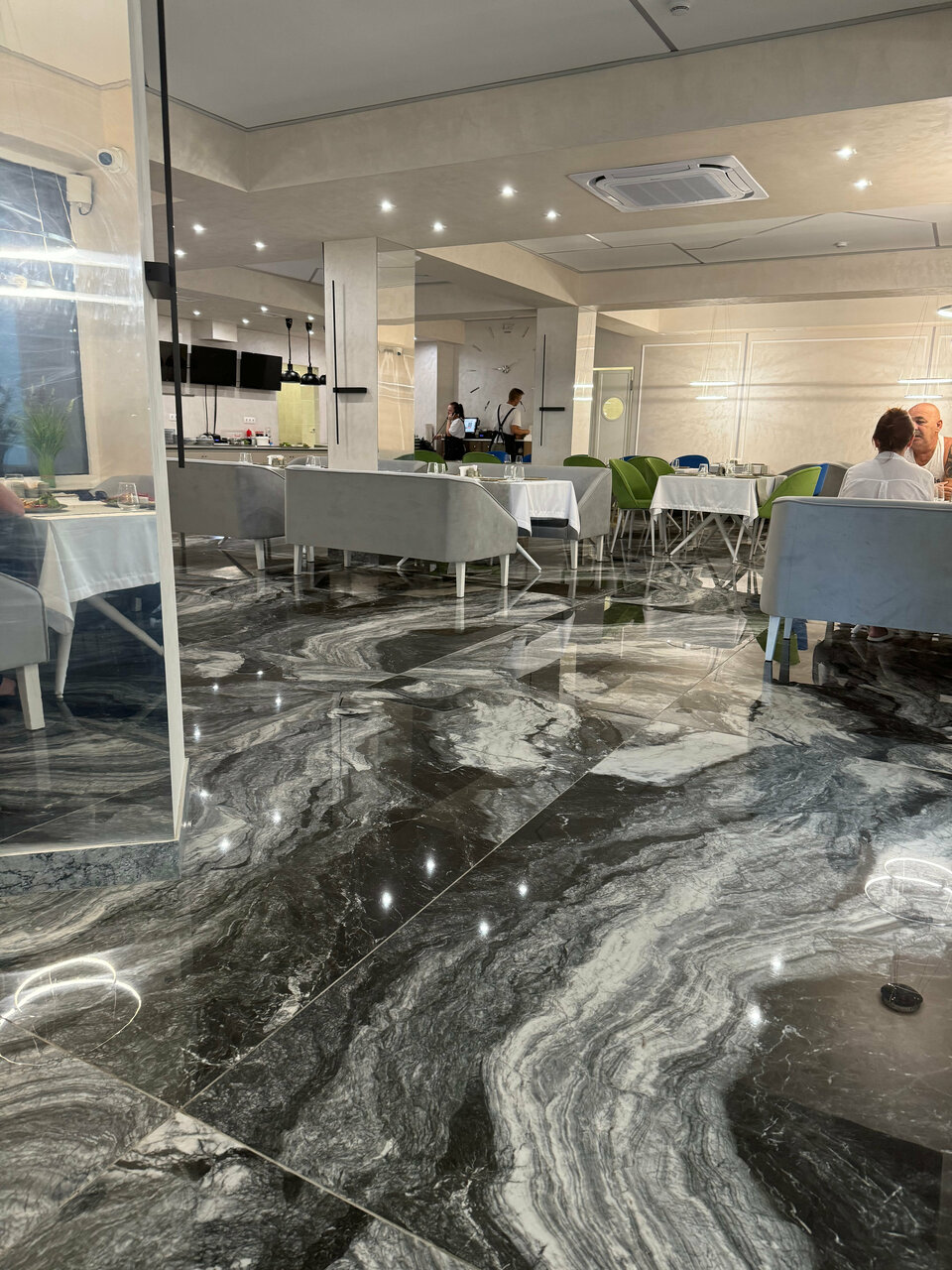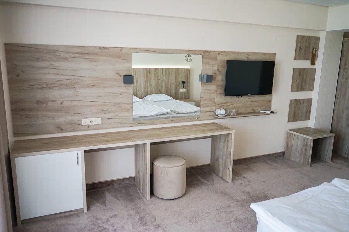 Новенький отель, не затертый , не замызганный. Отделка номеров не люкс но весьма качественно, сантехника Гуд!!! Кровать, белье, мебель -со вкусом подобрано все функционально, чайник, холодильник( мини- 4 бутылки вина вмешает). Полотенца меняли каждый день. Уборка в номере странноватая- но все можно настроить!бассейн зачет, есть подогрев. Ресторан с 9 утра до 22х. Можно заказать в номер! При бассейне — крытый бар, ассортимент норм. Выход к морю — ближе некуда прям из бассейна! Завтраки никакие как и везде но голодным не будешь.Питаться можно в столовой у рынка- 5 минут от отеля, вкусно. Проживание не дешево, Но за ништяки надо платить, Рекомедую! P.S — сауна с 10 утра до закрытия бассейна бесплатно! Есть спа но там на любителя.