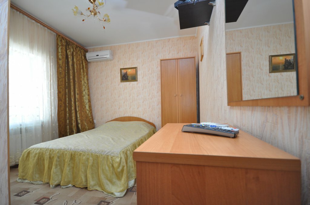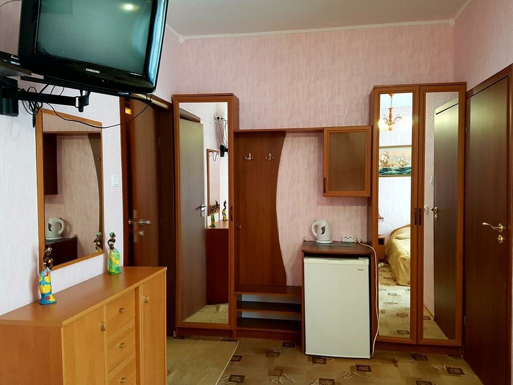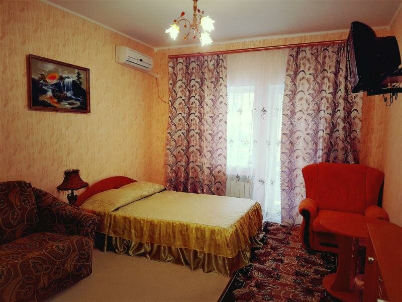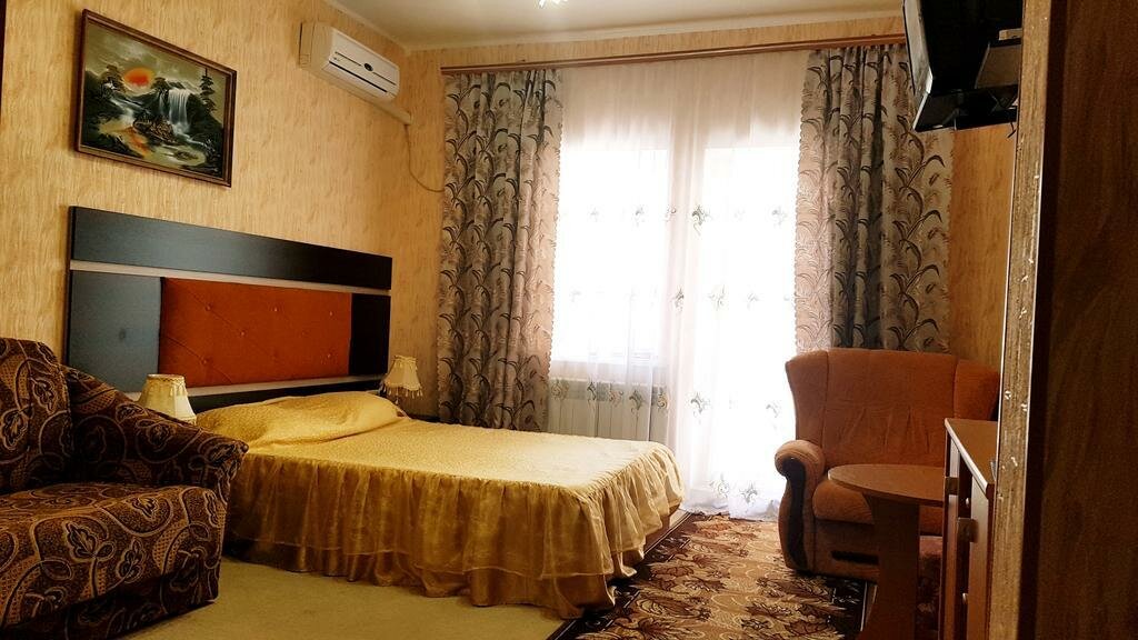 Хорошая гостиница. Чисто, убрано. Удобная кровать и подушки, что встречается не в каждом отеле, но телевизор старый кинескопный. Давно таких не встречали. Душевая маленькая, но чистая. Своя столовая, как еда не знаю, т.к снимало без питания, но компот по 75 руж за стакан- дорого как по мне. До моря по прямой минут 5-7. С утра ездит машина, которая убирает мусор- спать невозможно. Территория охраняется, даже ходит охранник ночью.