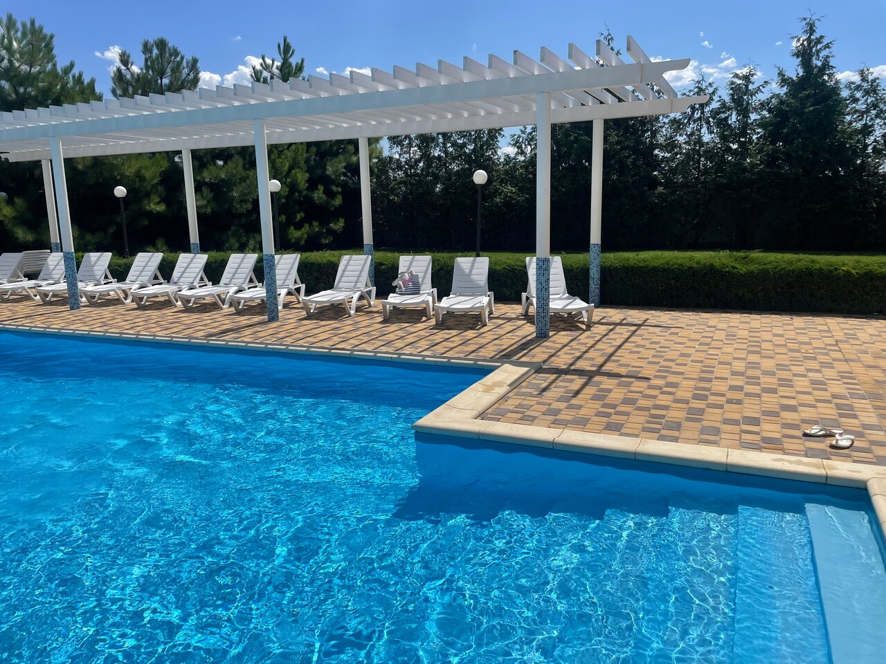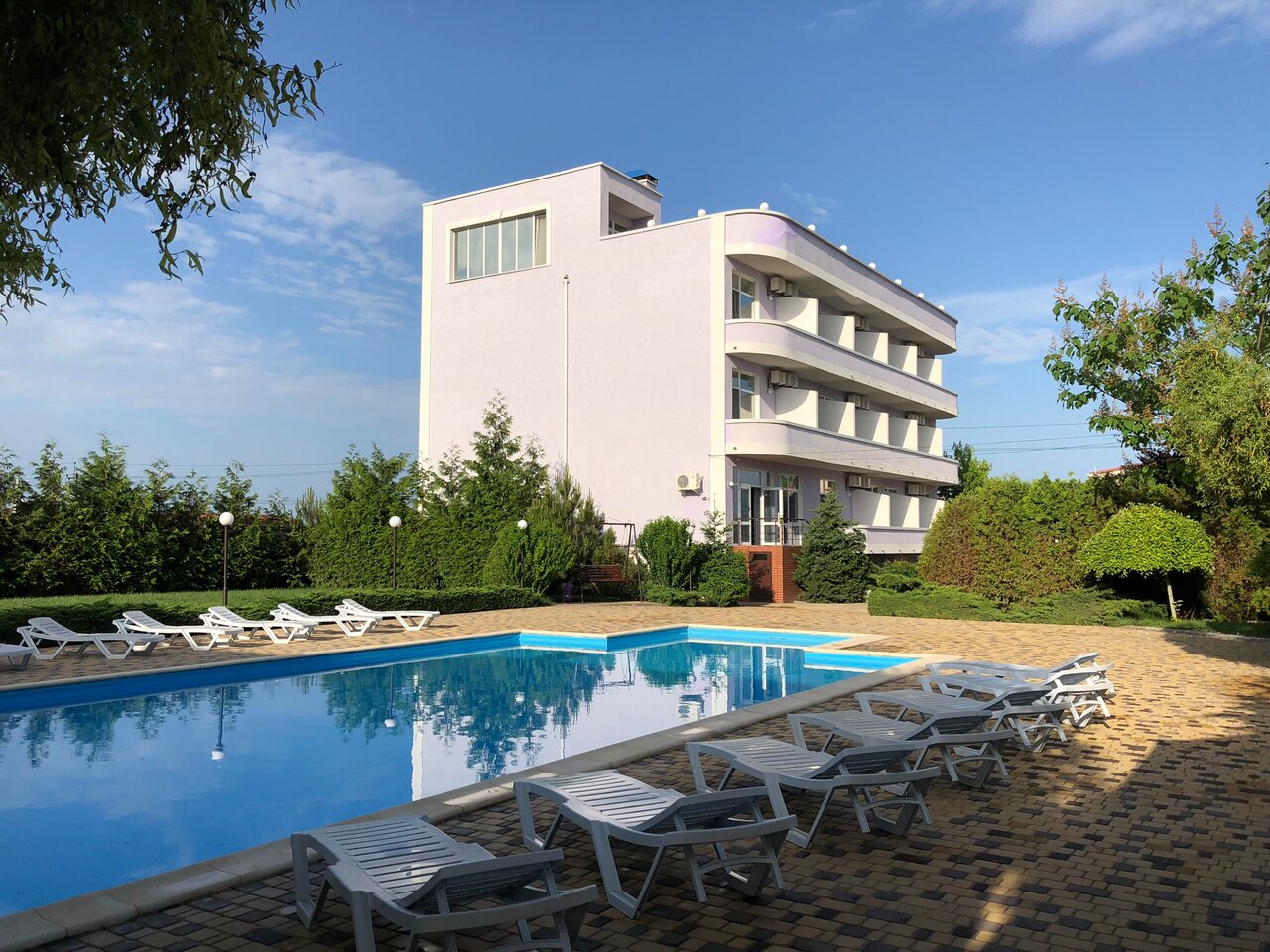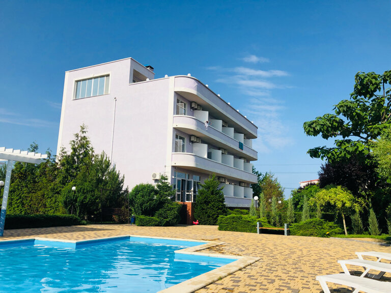 Хороший, чистый, уютный отель. А главное современные номера, что большая редкость для Николаевки. Белое постельное белье. Ухоженная территория с беседками, фонтанчиком и бассейном. Большим, действительно большим, а не сфотографированным так. До моря далековато, но мы были на машине и это не было проблемой. Рядом есть хороший, современный с большим ассортиментом супермаркет.