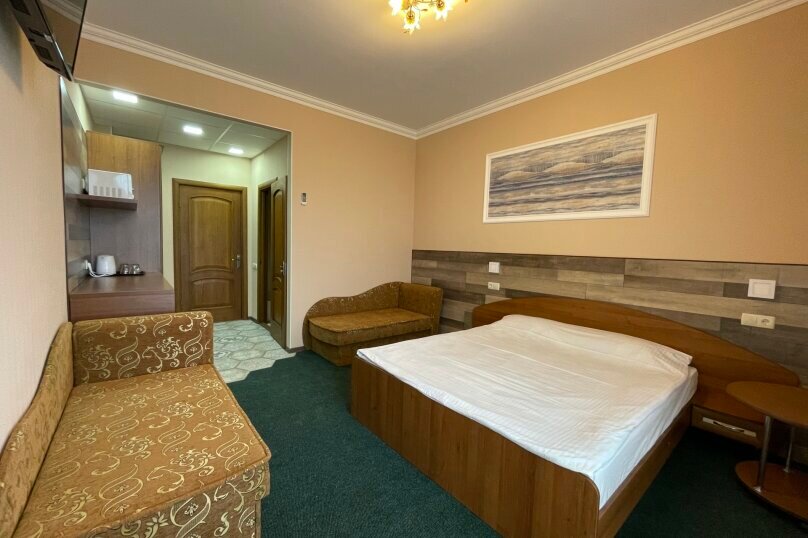 Оснащение номера: телевизор с плоским экраном,Wi-Fi, кондиционер, диван, журнальный столик, зеркало, туалетный столик,холодильник, чайник, посуда, раковина.Ванная комната: ванна, раковина, унитаз, банные полотенца, одноразовые средства гигиены.